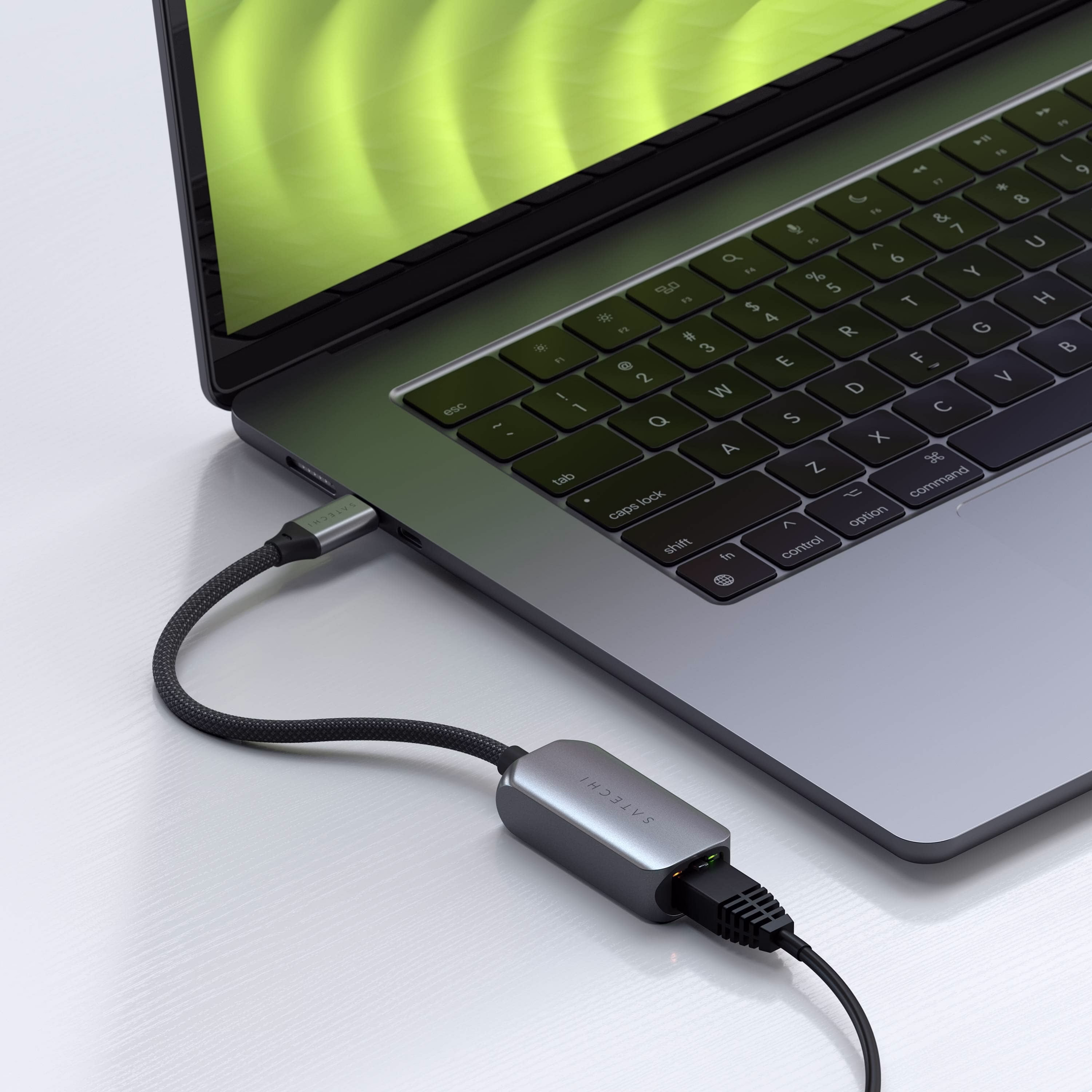 Адаптер Satechi USB-C 2,5 Gigabit Ethernet має гладкий алюмінієвий корпус, кабель у оплітці, що не сплутується, і міцну посилену горловину. Тонкіший, кругліший і компактніший роз’єм USB-C забезпечує покращене з’єднання з пристроями в захисних футлярах.