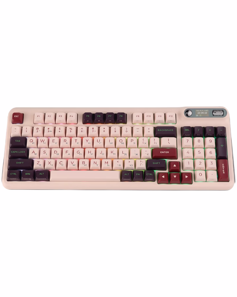 Зустрічайте KZZI Z98 – клавіатуру нового покоління з багатофункціональним дисплеєм для повної кастомізації! Конструкція Gasket Mount з 4 шарами звукоізоляції забезпечує м'який друк, а вбудований USB-хаб розширює ваші можливості. Ідеальний вибір для роботи та ігор завдяки перемикачам Rainbow Switch та PBT-ковпачкам.