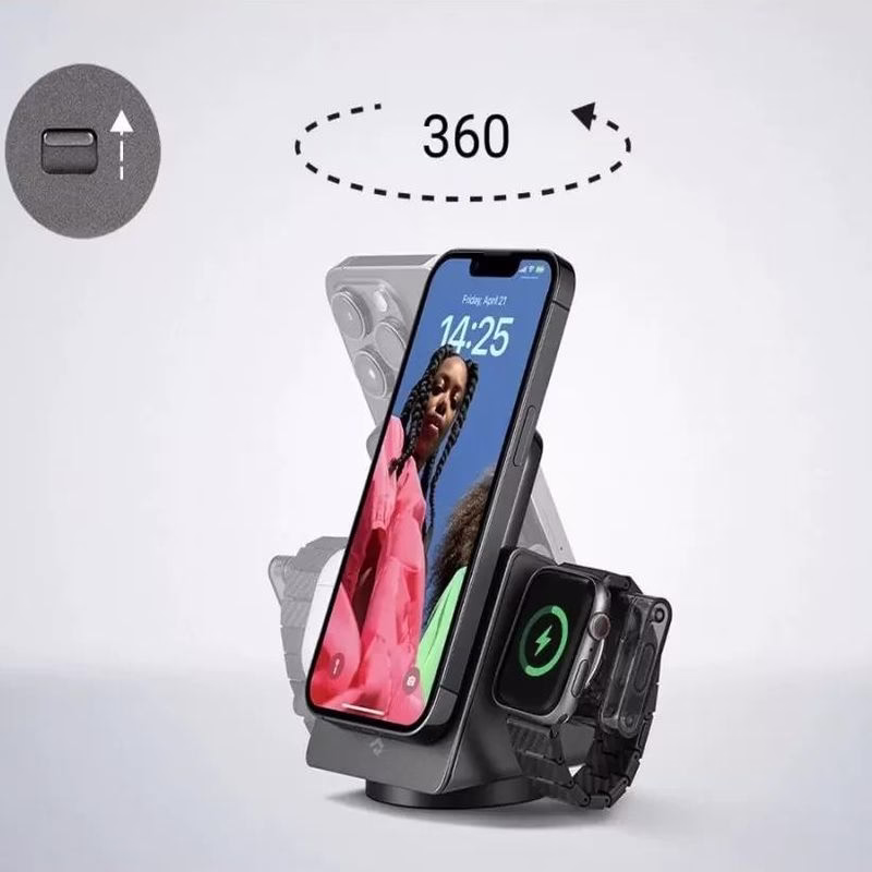Заряджайте необхідні пристрої Apple, заощаджуйте місце на столі та позбувайтеся хаосу кабелів — усе це за допомогою одного компактного бездротового зарядного пристрою.