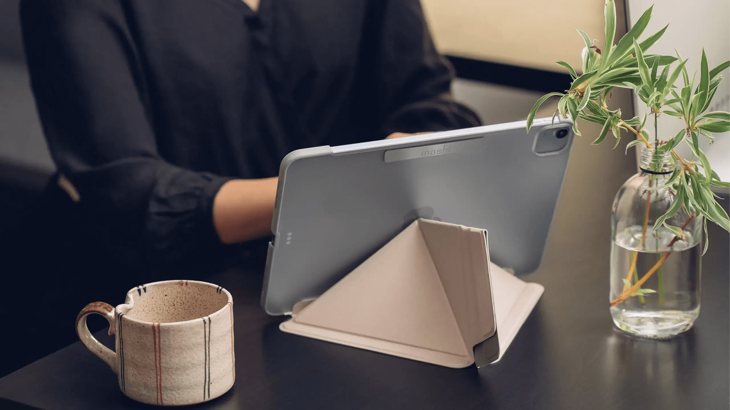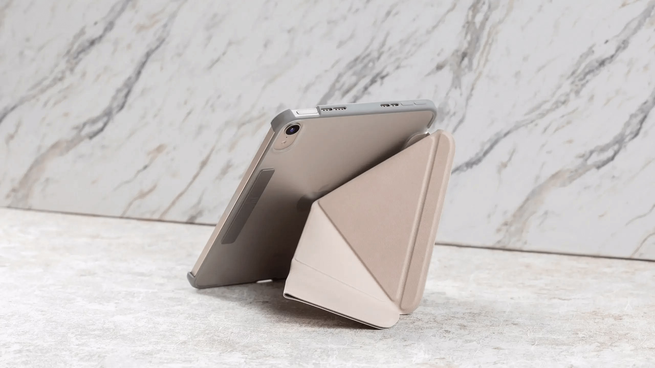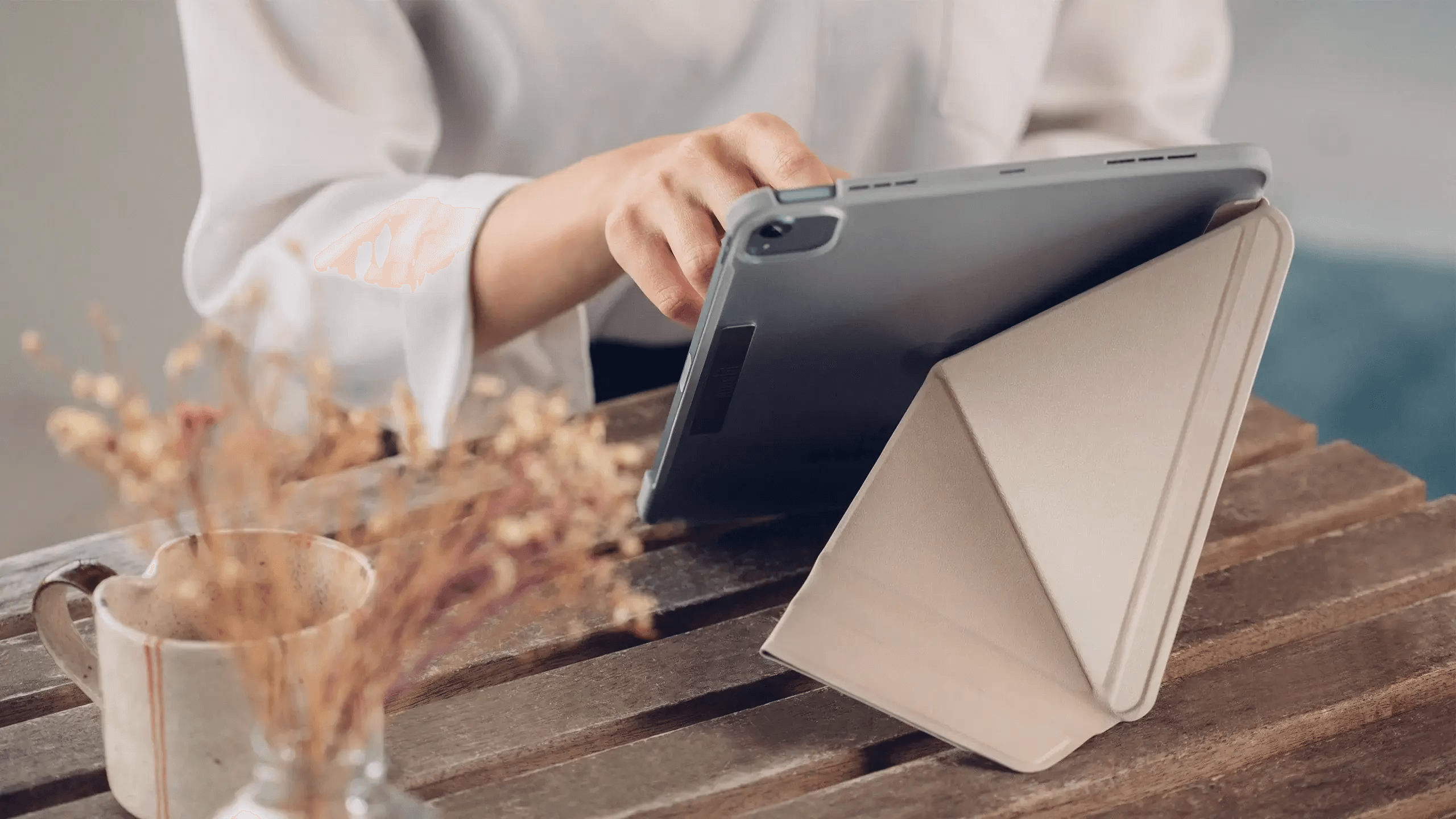 Чохол у стилі орігамі забезпечує захист iPad mini на 360° і підтримує різні кути огляду. Обкладинка з мікрофіброю та магнітною застібкою захищає сенсорний екран і Apple Pencil, а також кріпиться до металевих поверхонь для перегляду без рук.