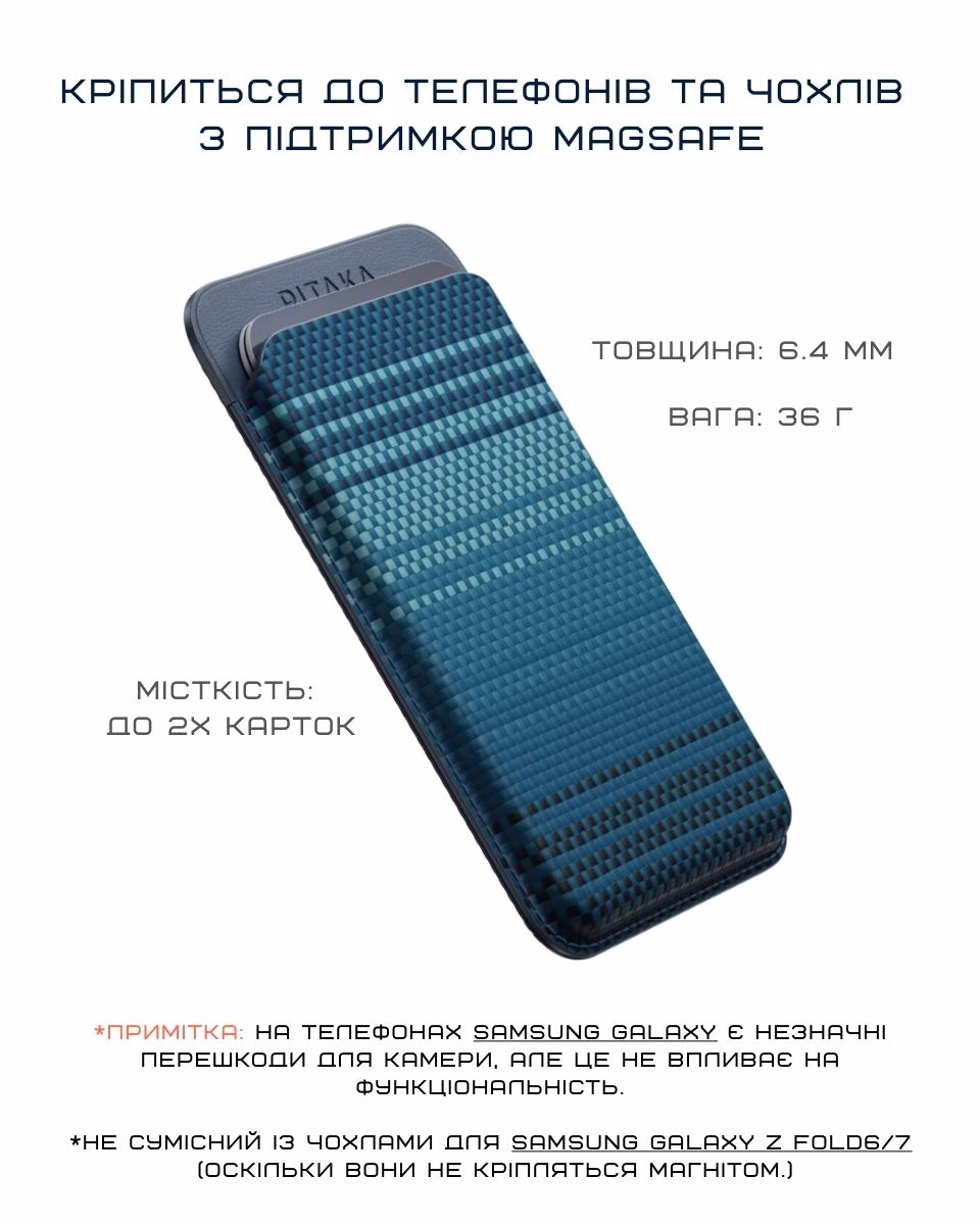 - Кардхолдер сумісний із чохлами MagSafe або Pitaka MagEZ — із “звичайними” чохлами триматиметься слабше.