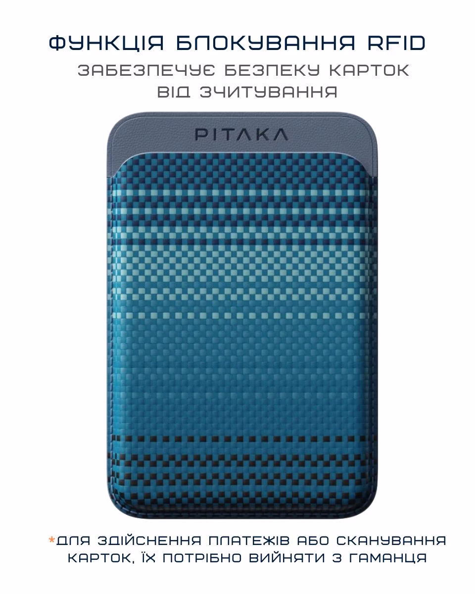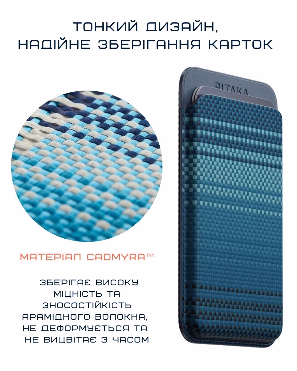 Pitaka Magnetic Woven Wallet — саме для таких моментів. Міцно тримається і вміщує необхідне: банківську картку, права, чи пропуск на роботу. І так зручно: підійшов до авто — документи під рукою, вийшов на прогулянку — і нічого не забув, зайшов в офіс - приклав картку на вході. Практичність та організованість від Pitaka.