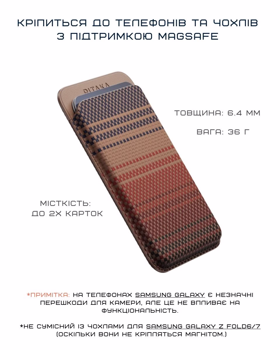 - Кардхолдер сумісний із чохлами MagSafe або Pitaka MagEZ — із “звичайними” чохлами триматиметься слабше.