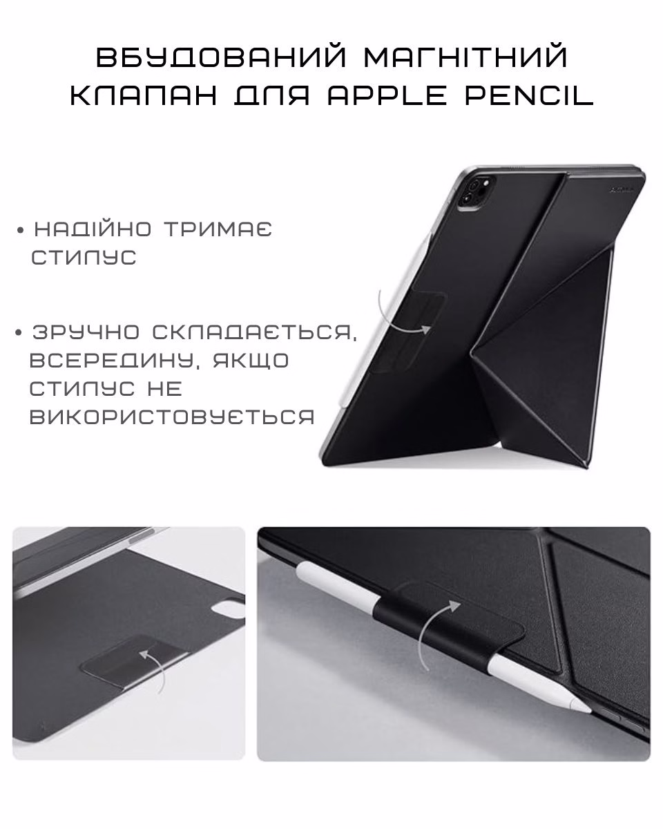- Вбудований тримач надійно фіксує Apple Pencil, щоб він завжди був під рукою.