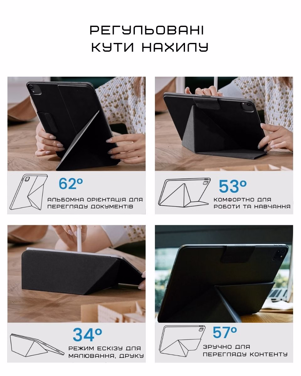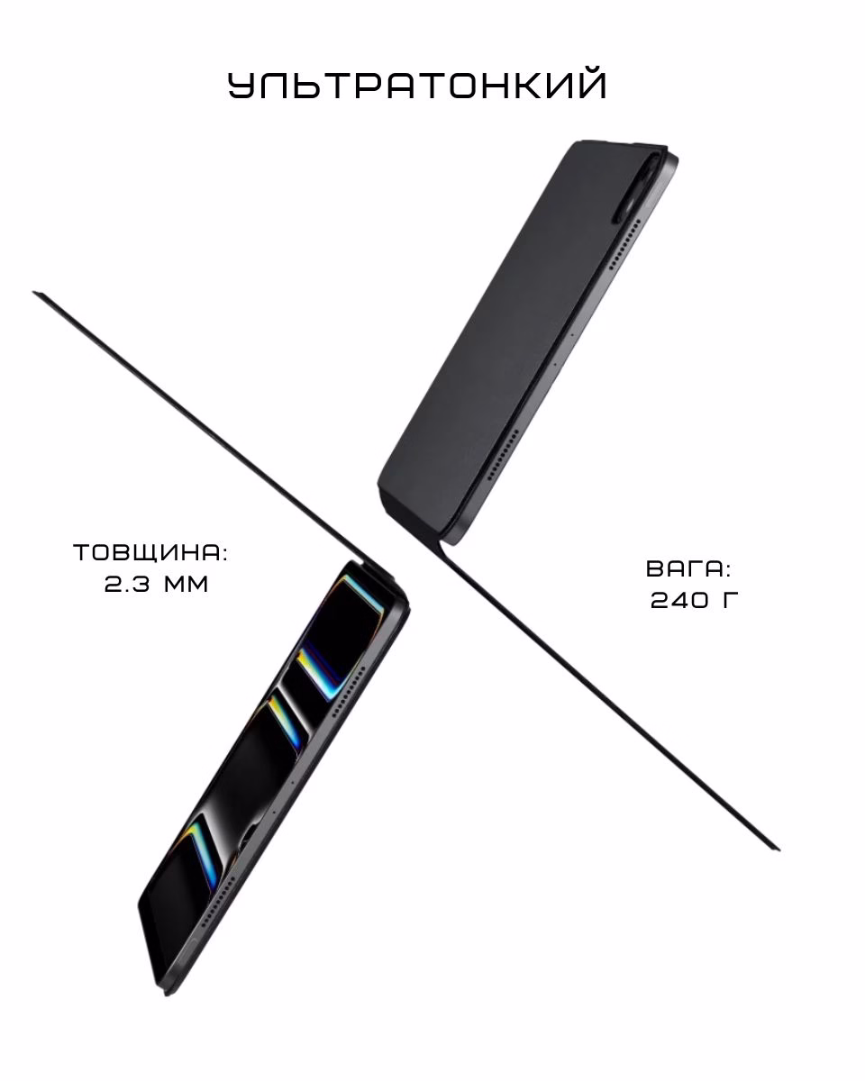 Магнітне кріплення та тонкий і легкий профіль. Він не додає зайвого об'єму і дозволяє надійно фіксувати iPad в різних положеннях для роботи чи відпочинку.3. Наскільки він надійний?