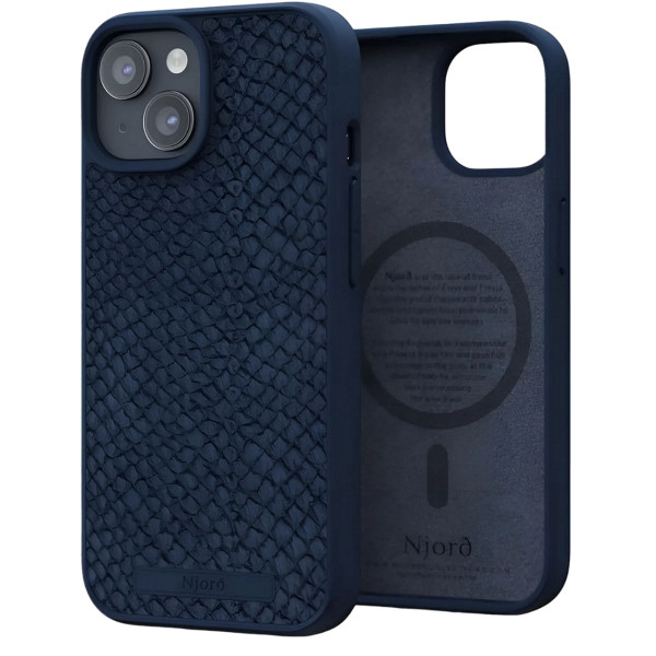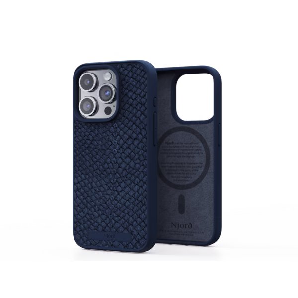 Чохол-накладка Njord Salmon Leather MagSafe Case Blue для iPhone 15 Pro