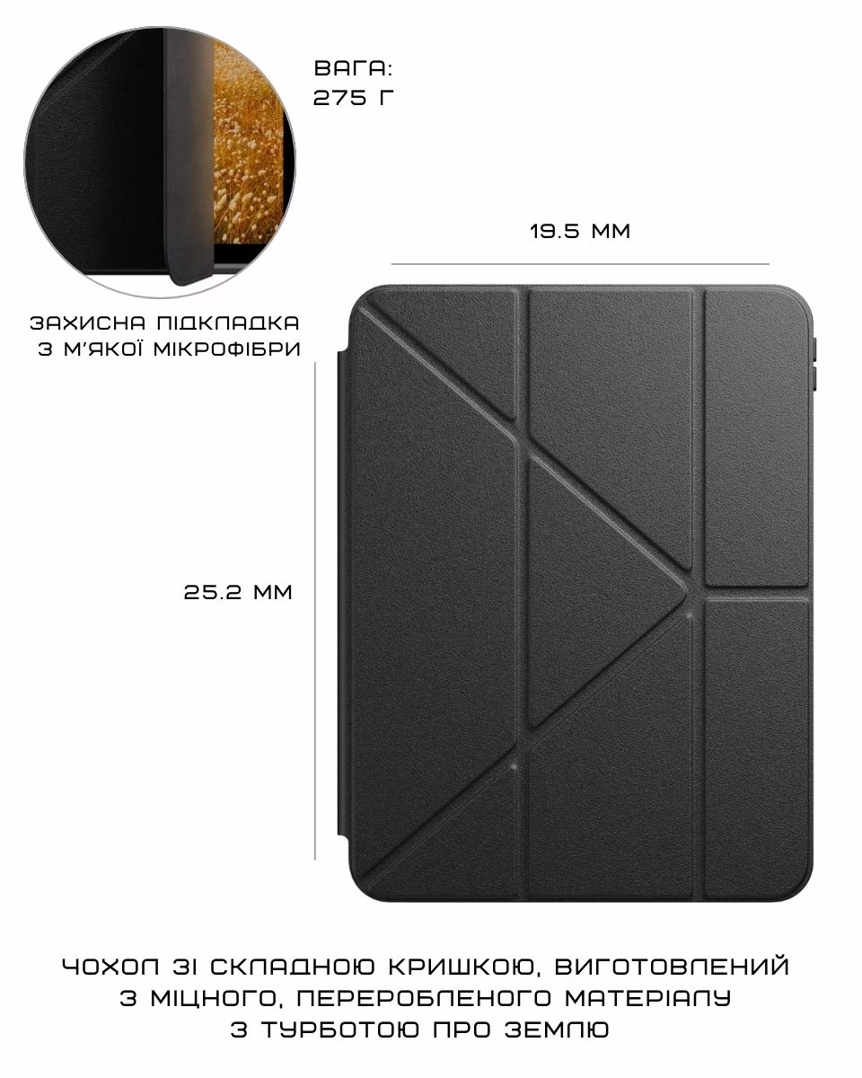 Завдяки посиленим краям та продуманій конструкції, він забезпечує ваш iPad Air 11" M2/M3 довговічним захистом, який не компрометує стиль. Це інвестиція у ваш преміальний гаджет.2. Що робить цей чохол особливим?