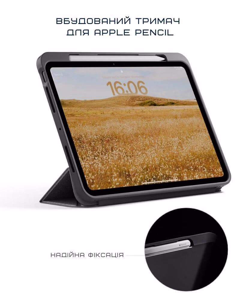 Active Case - це ретельно продумане та ефективне рішення. Вбудований тримач для Apple Pencil робить користування більш зручним для творчості або робочих проєктів. А магнітна конструкція моментально пробуджує твій iPad, як тільки ти відкриваєш його.