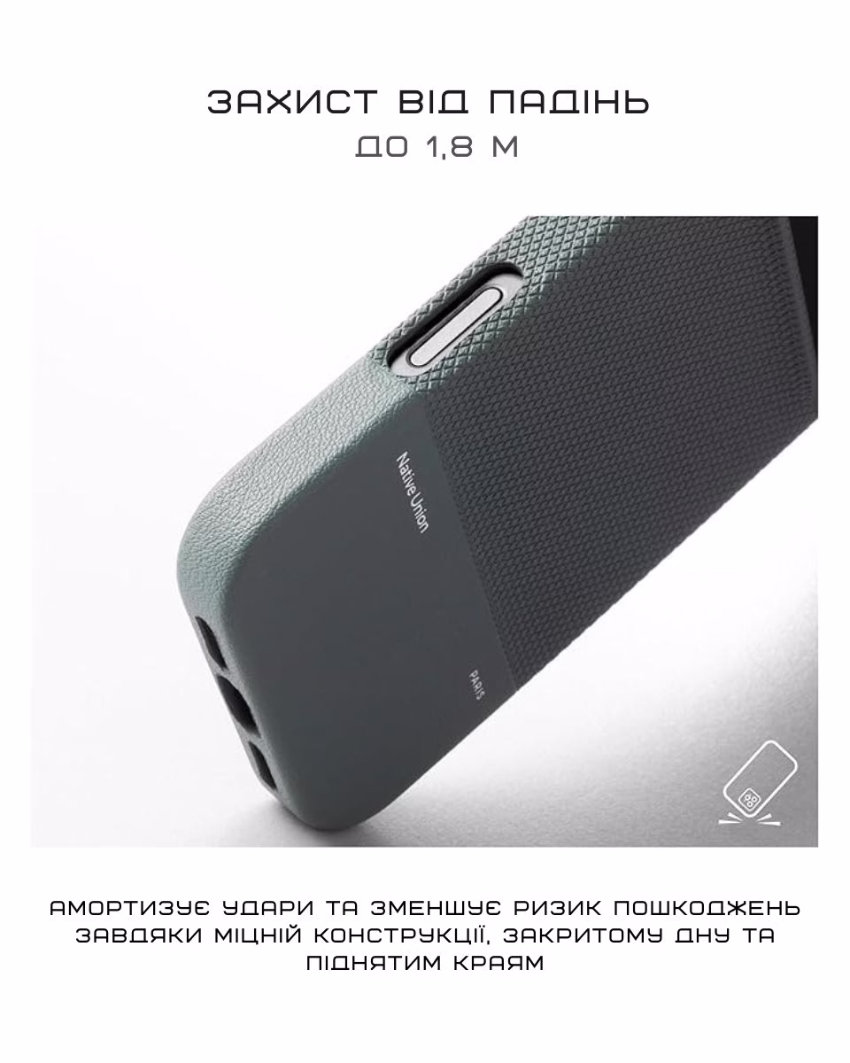Native Union інтегрували MagSafe-магніт в саму структуру чохла, тож бездротова зарядка працює швидко й стабільно, без перегріву телефона. Чохол також повністю сумісний з MagSafe-аксесуарами — гаманцями, підставками, автомобільними тримачами та іншими повсякденними аксесуарами, які легко кріпляться й так само легко знімаються.