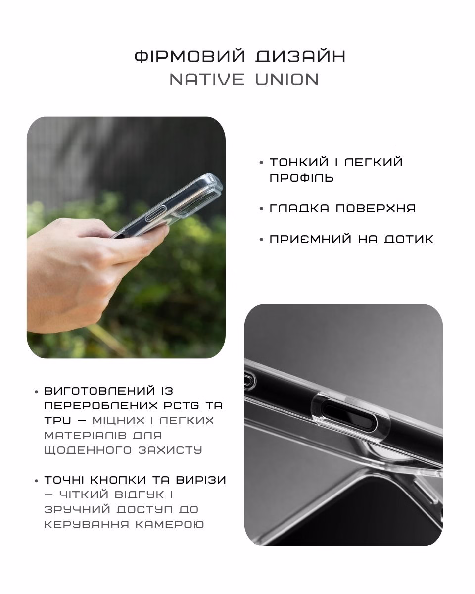 Native Union інтегрували MagSafe-магніт в саму структуру чохла, тож бездротова зарядка працює швидко й стабільно, без перегріву телефона. Чохол також повністю сумісний з MagSafe-аксесуарами.