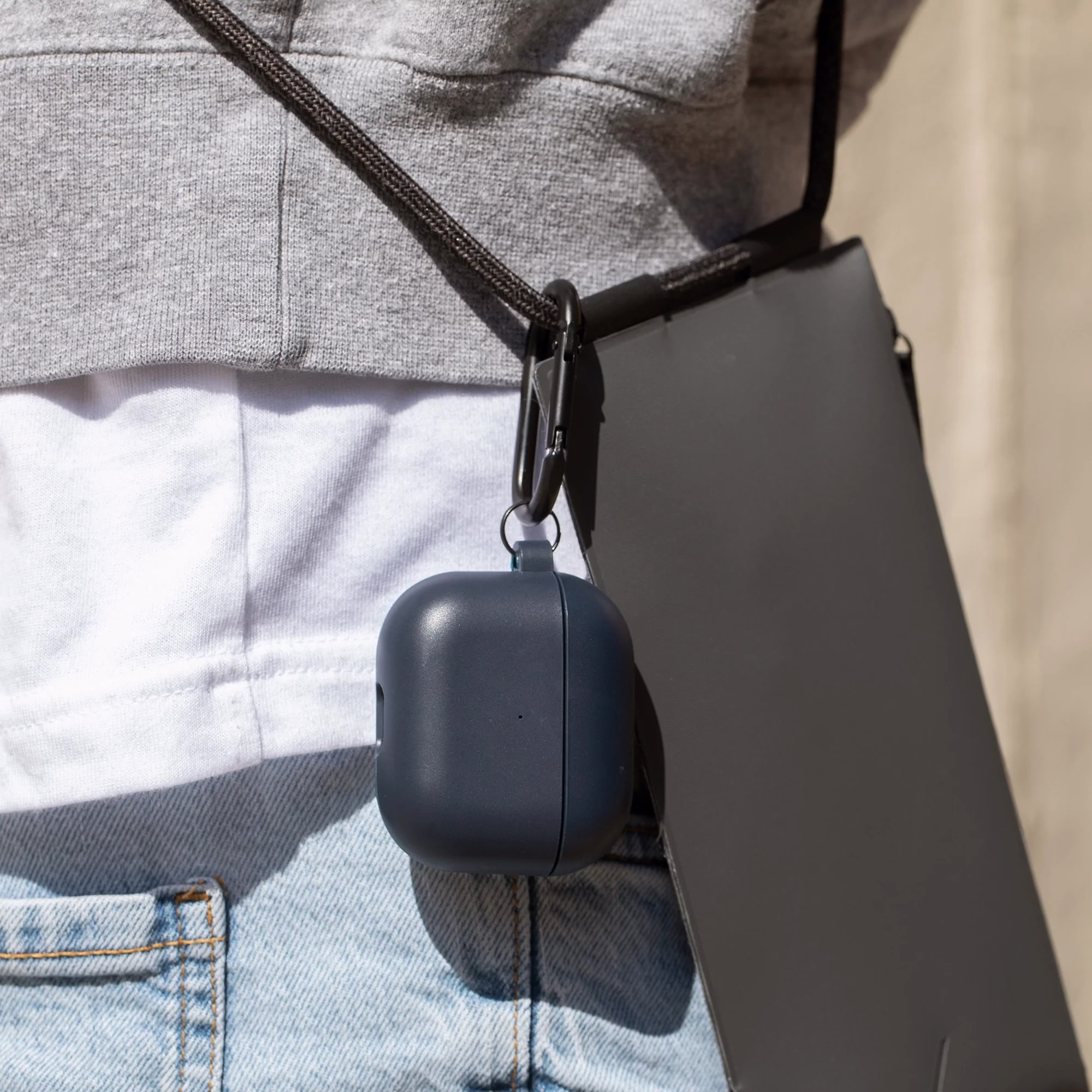 Подорожуйте куди завгодно зі своїми AirPods 3 у мінімалістичному легкому футлярі, виготовленому з міцного переробленого матеріалу та оснащеному гладкою алюмінієвою кліпсою, яку можна прикріпити до будь-якої сумки або ременя для зручного перенесення.