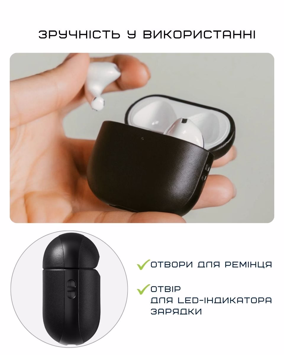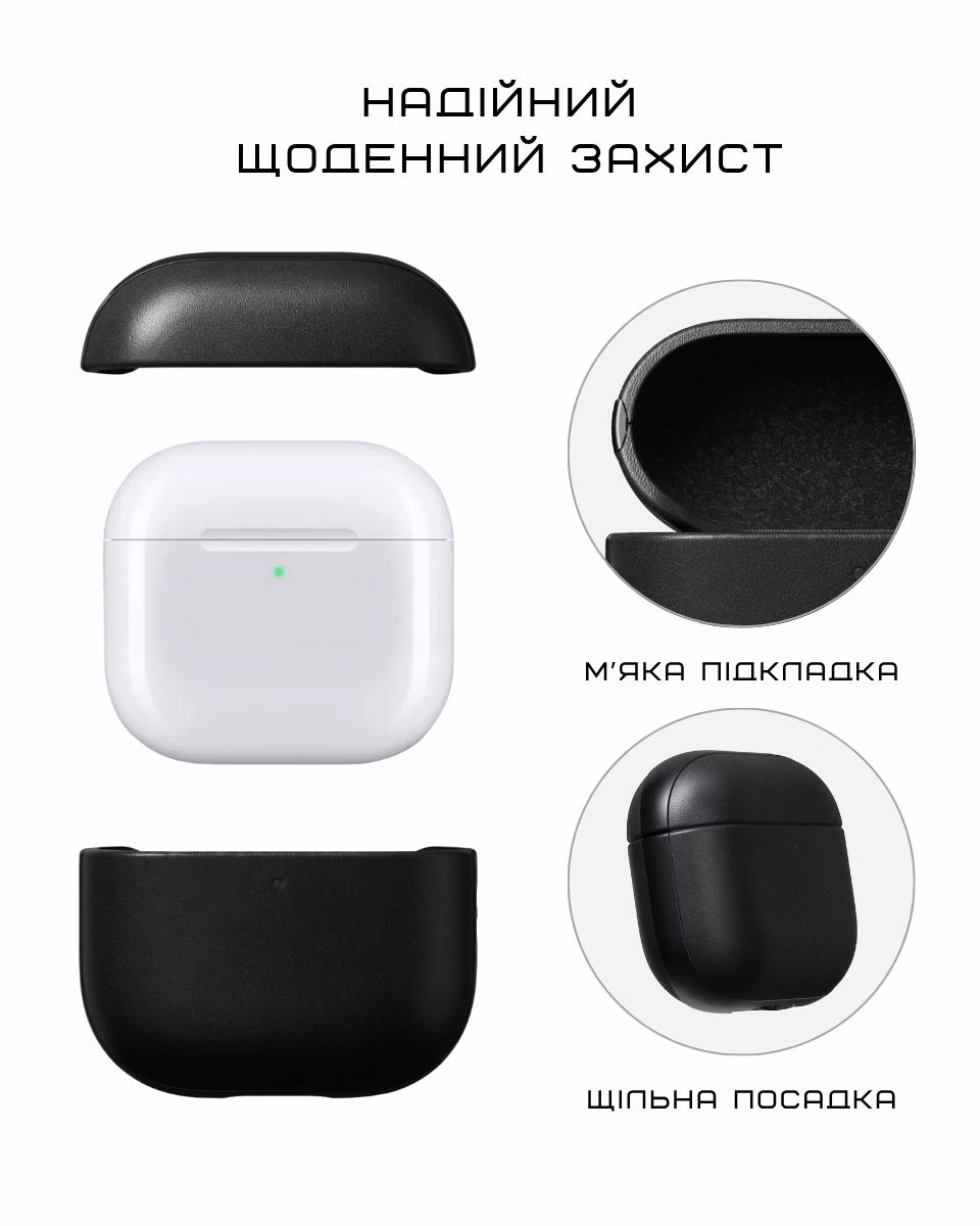 - М'яка підкладка з мікрофібри всередині: делікатно захищає кейс AirPods від подряпин.