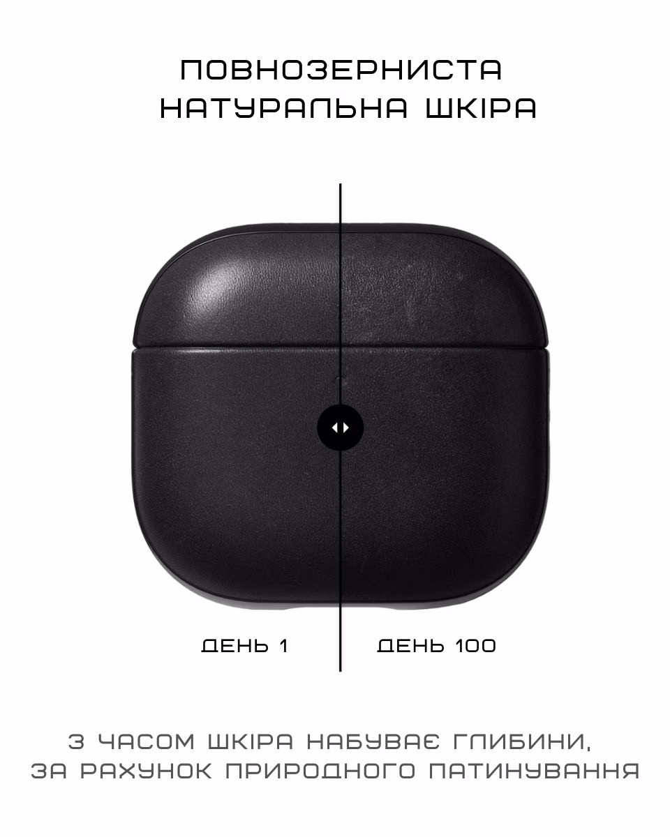 Натуральна повнозерниста шкіра зовні, м’яка мікрофібра всередині — усе для надійного захисту та стильного вигляду. Легкий, двосекційний дизайн зберігає форму кейсу, зручно лежить у руці й захищає від подряпин та падінь. Отвір для індикатора зарядки, акуратний виріз для динаміка та місце для кріплення шнурка роблять користування ще комфортнішим. Амортизуючі властивості та м’який внутрішній шар мікрофібри поглинають удари та поштовхи, кожного дня надійно захищаючи AirPods.