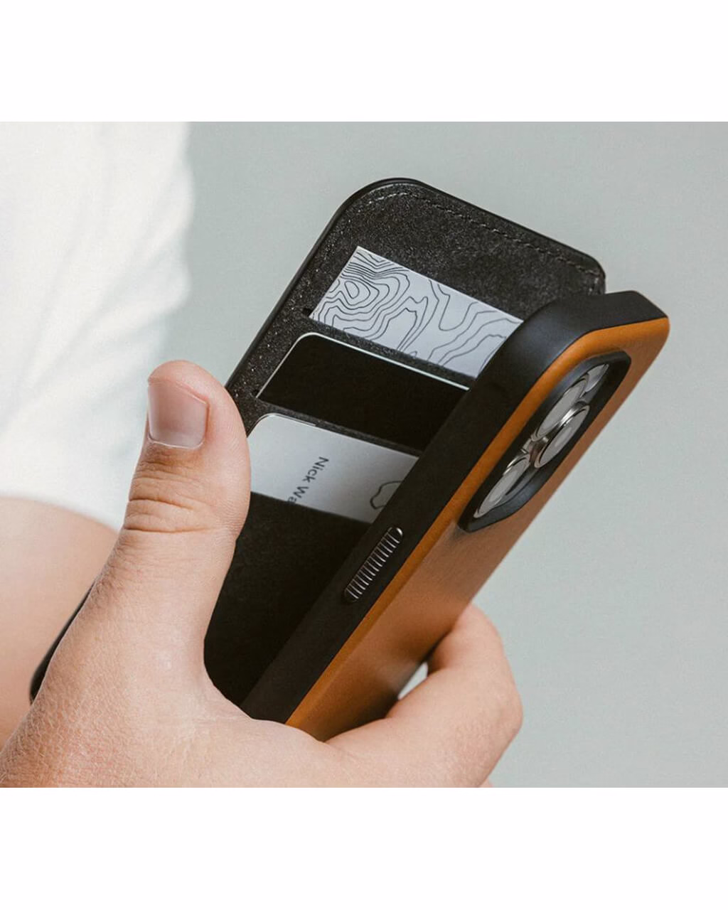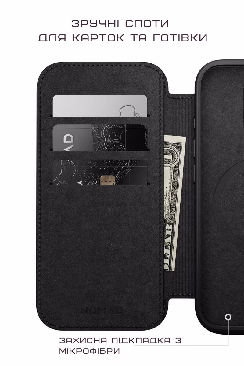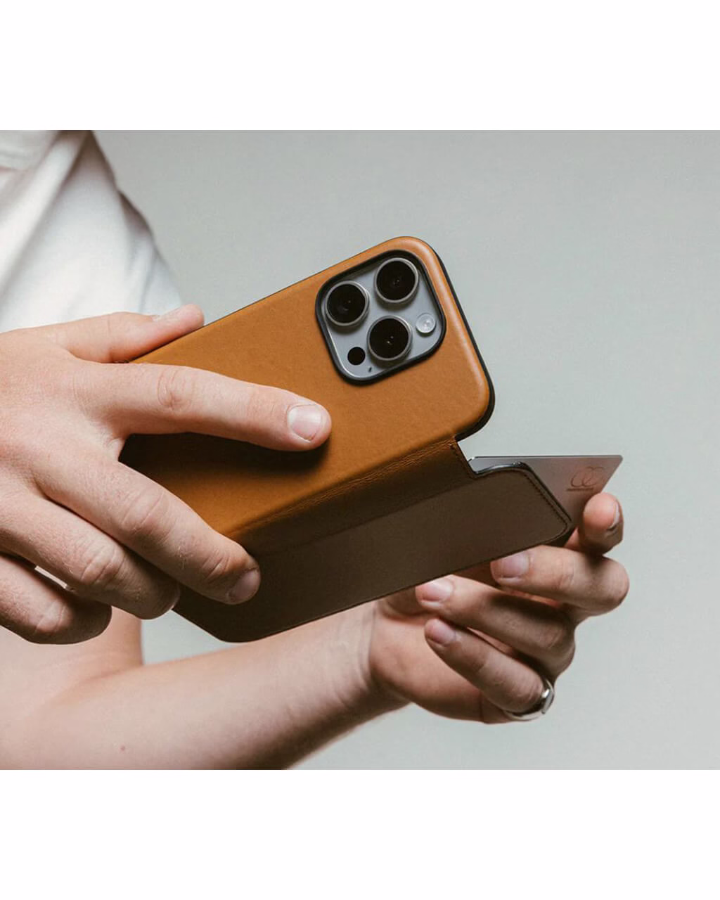 Стильний захист із преміальної екологічної шкіри, яка з часом набуває унікального вигляду завдяки природному патинуванню. Три слоти для карток і спеціальне відділення для купюр роблять цей чохол ідеальною заміною гаманцю — все необхідне під рукою, організовано та зручно.