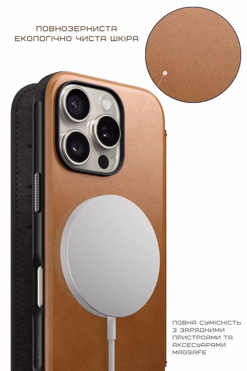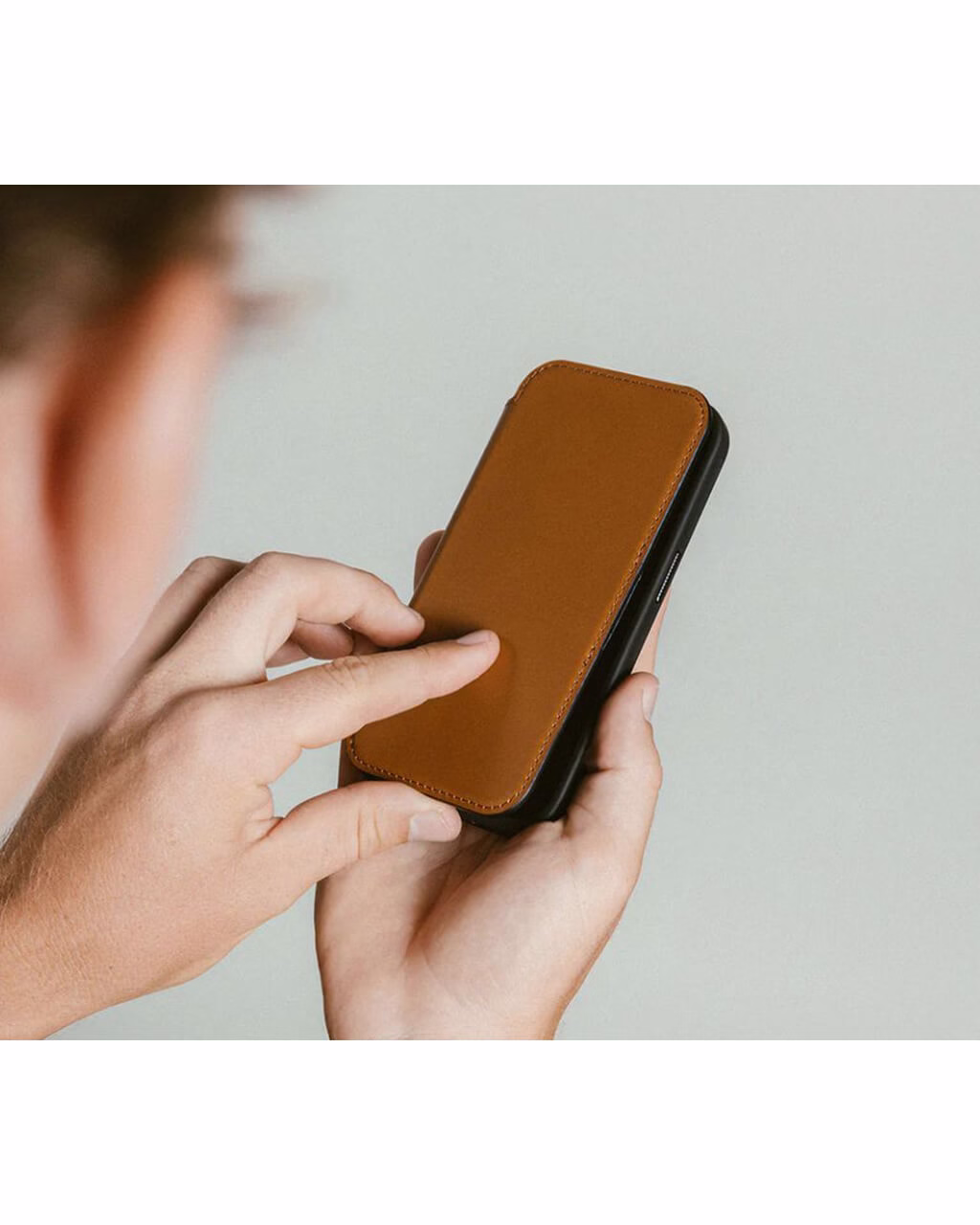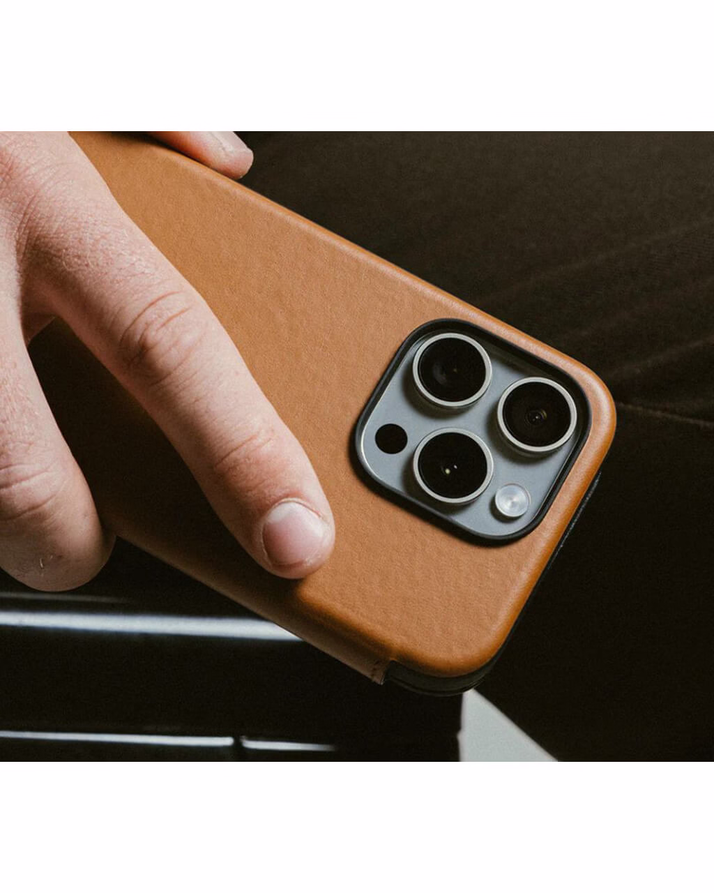 Стильний захист із преміальної екологічної шкіри, яка з часом набуває унікального вигляду завдяки природному патинуванню. Три слоти для карток і спеціальне відділення для купюр роблять цей чохол ідеальною заміною гаманцю — все необхідне під рукою, організовано та зручно.