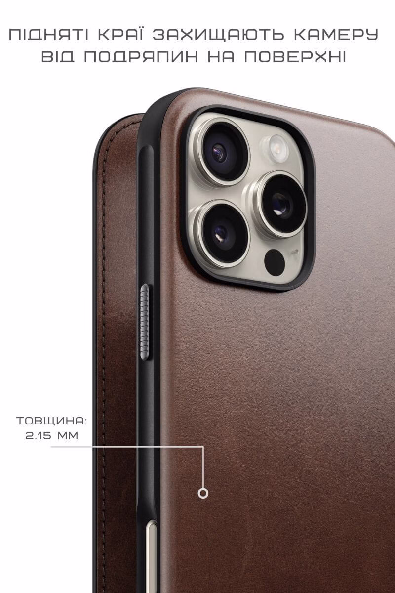 Стильний захист із преміальної екологічної шкіри, яка з часом набуває унікального вигляду завдяки природному патинуванню. Три слоти для карток і спеціальне відділення для купюр роблять цей чохол ідеальною заміною гаманцю — все необхідне під рукою, організовано та зручно.