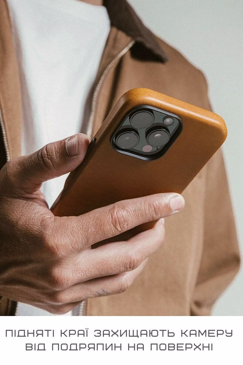 Чохол виготовлено з натуральної шкіри преміум-класу, яка не тріскається й не розшаровується. З часом вона покривається легкою патиною — це не зношення, а природне старіння, яке додає характеру та індивідуальності.