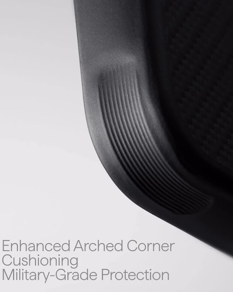 - Захист Arched Corner: Спеціальні повітряні подушки на кутах розсіюють ударне навантаження, захищаючи найвразливіші місця пристрою.