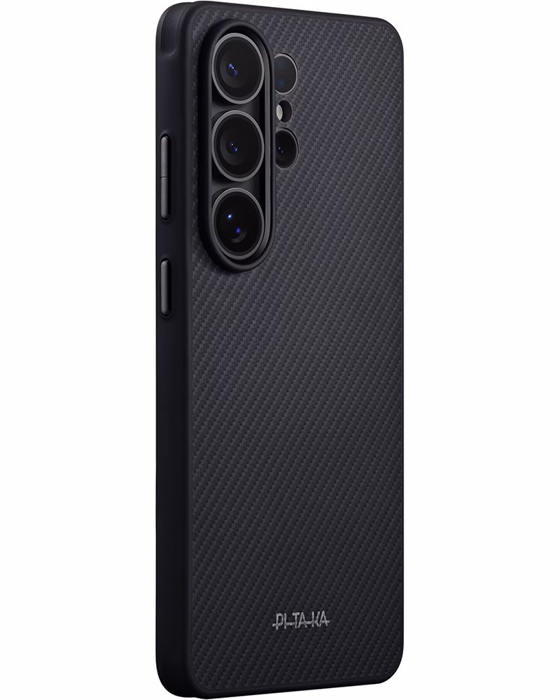 Pitaka Cairn Classic Twill 600D — це професійний рівень захисту для вашого Samsung Galaxy S26 Ultra. Лінійка Cairn створена для тих, хто потребує максимальної впевненості у безпеці пристрою без компромісів зі стилем. Чохол має гібридну конструкцію, що поєднує надміцне аерокосмічне арамідне волокно 600D та посилену раму з термополіуретану (TPU). Це дозволяє смартфону витримувати падіння з висоти до 1.2 метра згідно з військовим стандартом MIL-STD-810H.