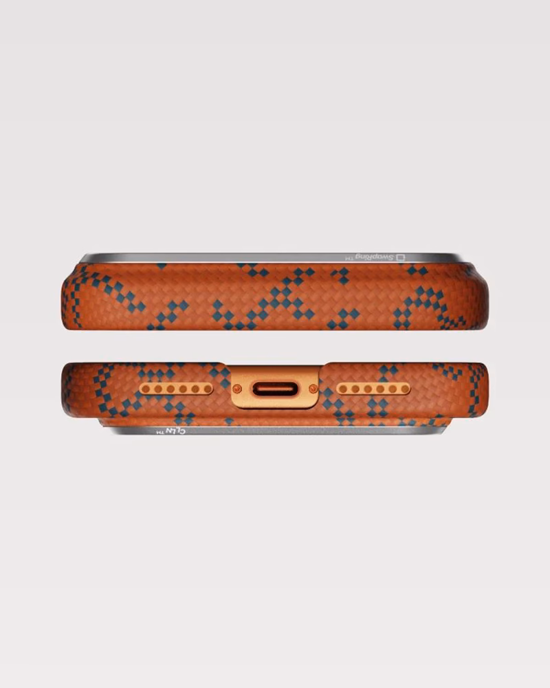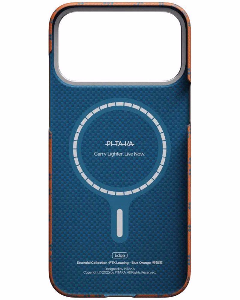 Pitaka Edge (оновлена назва серії Ultra-Slim) для iPhone 17 Pro — це історія, що починається з однієї нитки. Глибокий синій арамід у поєднанні з помаранчевими акцентами Monogram Blue/Orange втілює дух переосмислення. Аксесуар не приховує дизайн смартфона, а стає його "другою шкірою", додаючи витонченої текстурності, яку ви відчуватимете пучками пальців щоразу, коли берете телефон у руки.