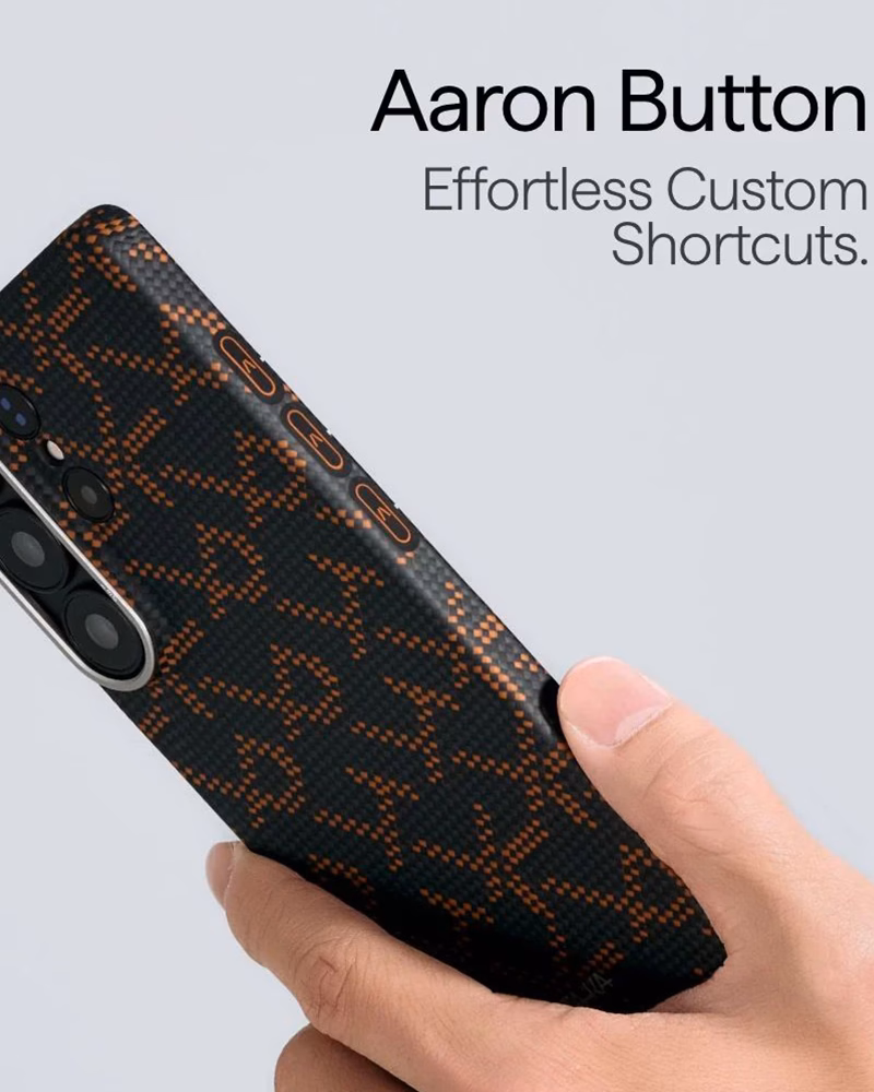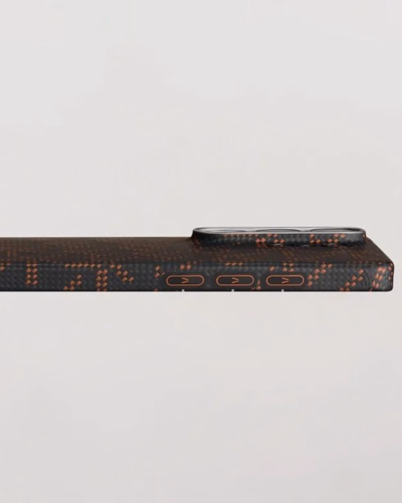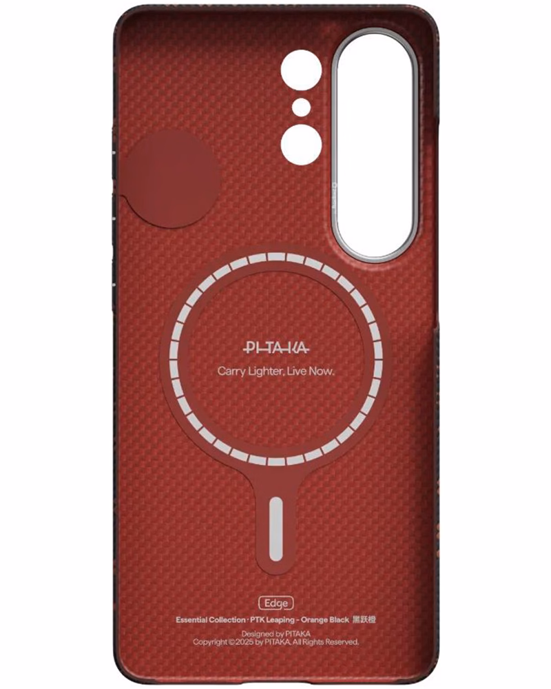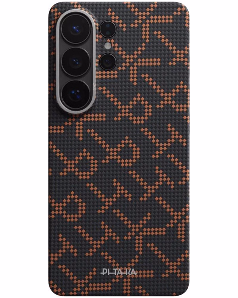 Pitaka Edge для Samsung Galaxy S26 Ultra — це маніфест легкості. Дизайн Monogram Black/Orange не просто переосмислює логотип бренду, а створює глибоку тактильну текстуру арамідного плетіння. Кожна лінія тут символізує відмову від зайвого шуму на користь чистої естетики. Чохол відчувається як "друга шкіра", не додаючи смартфону зайвого об'єму, але перетворюючи його на інструмент максимальної продуктивності.