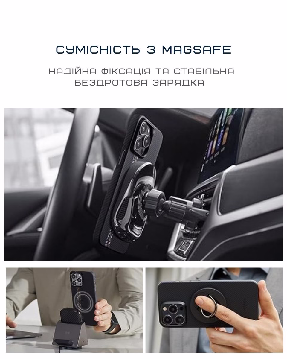 Магнітне кільце безшовно інтегроване в чохол, зберігає свою потужність і чіткість, при цьому чохол залишається неймовірно тонким та легким.