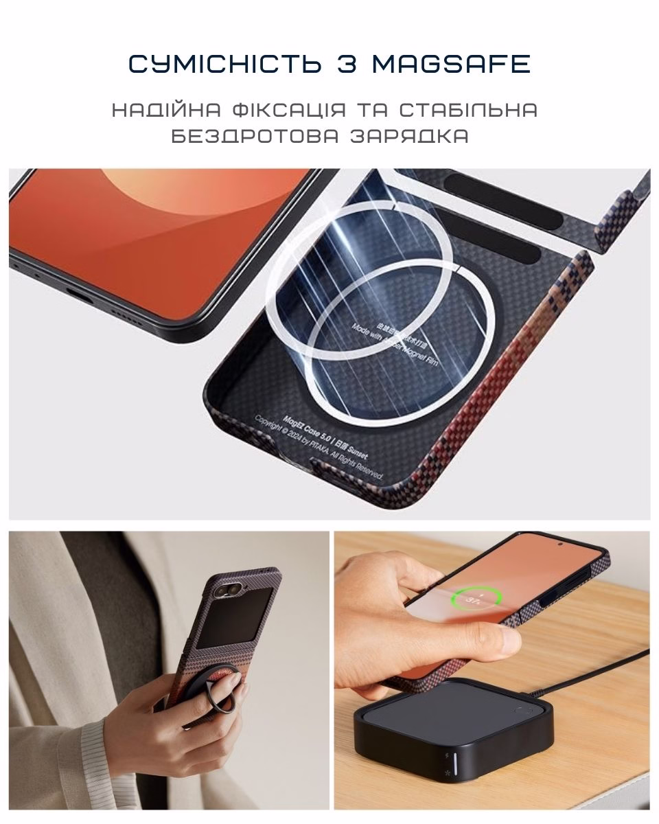 Магнітне кільце безшовно інтегроване в чохол, зберігає свою потужність і чіткість, при цьому чохол залишається неймовірно тонким та легким.