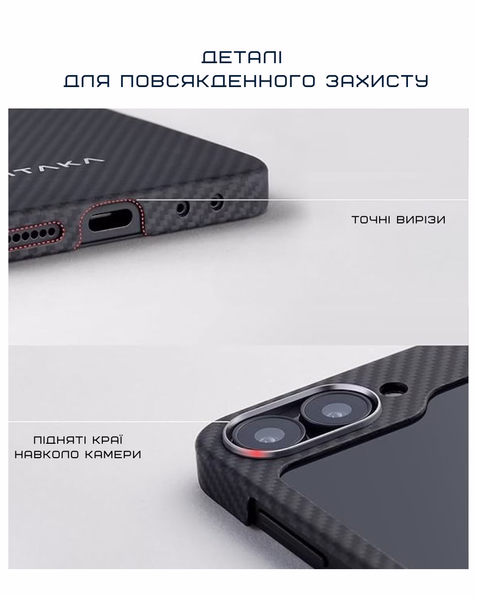 Надміцний чохол з арамідного волокна захищає телефон від несподіваних падінь, подряпин та ударів. Стильний, невагомий та надійний аксесуар преміальної якості, який не захочеться випускати з рук.