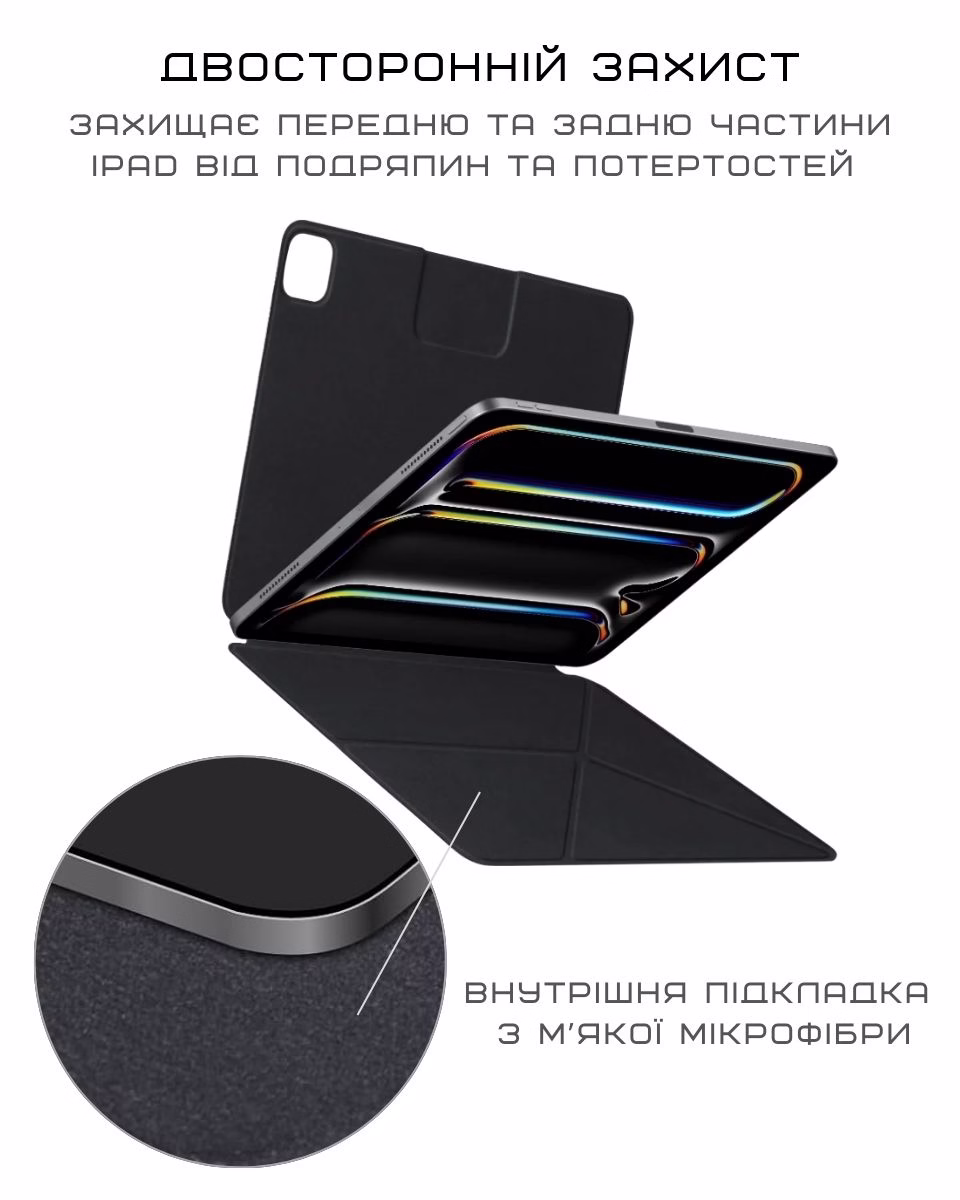 Він не виглядає дутим або нестійким. Це жорстка магнітна обкладинка з екошкіри преміального рівня, з ідеальними швами та лаконічним дизайном. Він не просто захищає, а додає стилю — виглядає так само впевнено, як і сам iPad.4. А як із кутами огляду? Можна комфортно працювати за столом чи дивитися фільми?