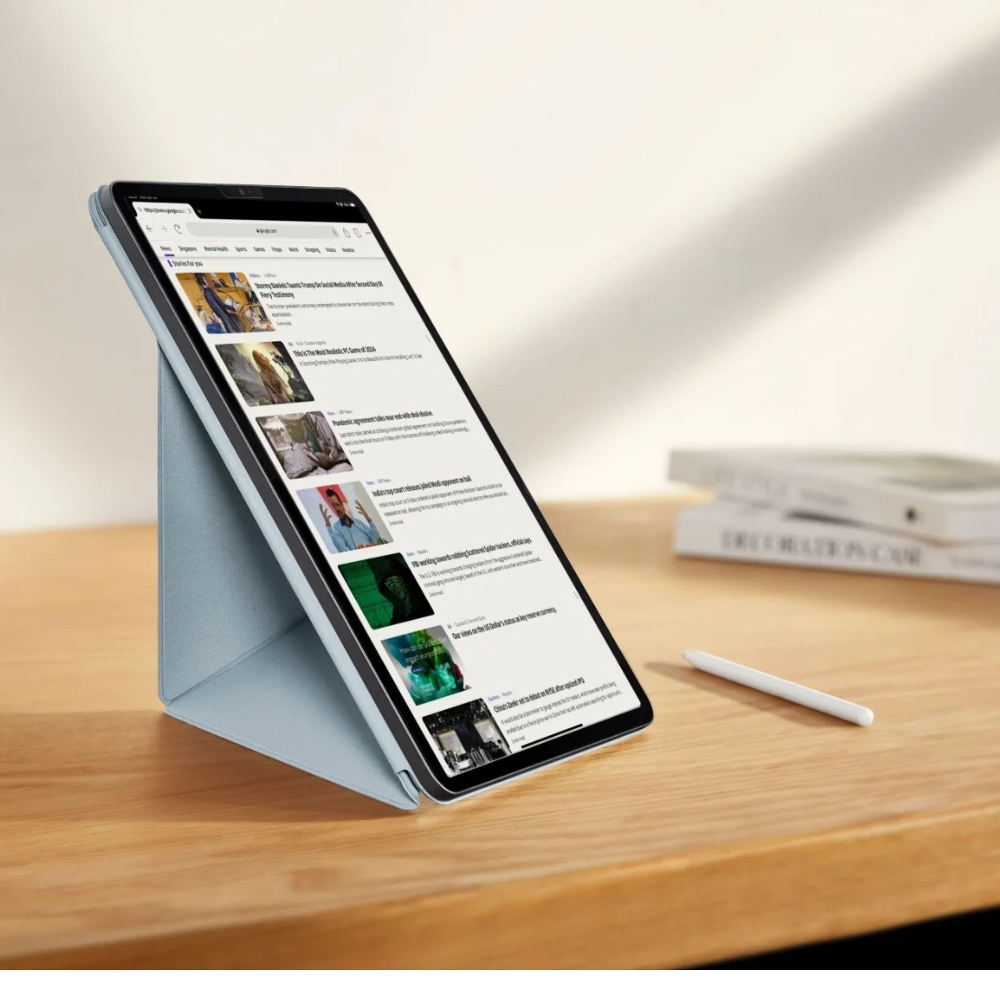 Легкий і компактний, зручно носити з собою, не додає зайвого обʼєму. Матовий корпус приємний на дотик, а сам чохол виглядає стильно і охайно. Вранці за кавою, вдень за навчанням чи проєктами, в дорозі за переглядом контенту - чохол подбає про комфорт завдяки регульованим кутам нахилу та захистить планшет від подряпин.