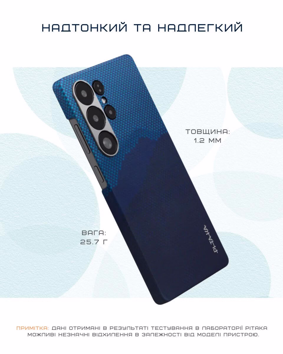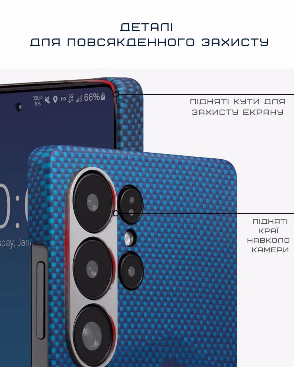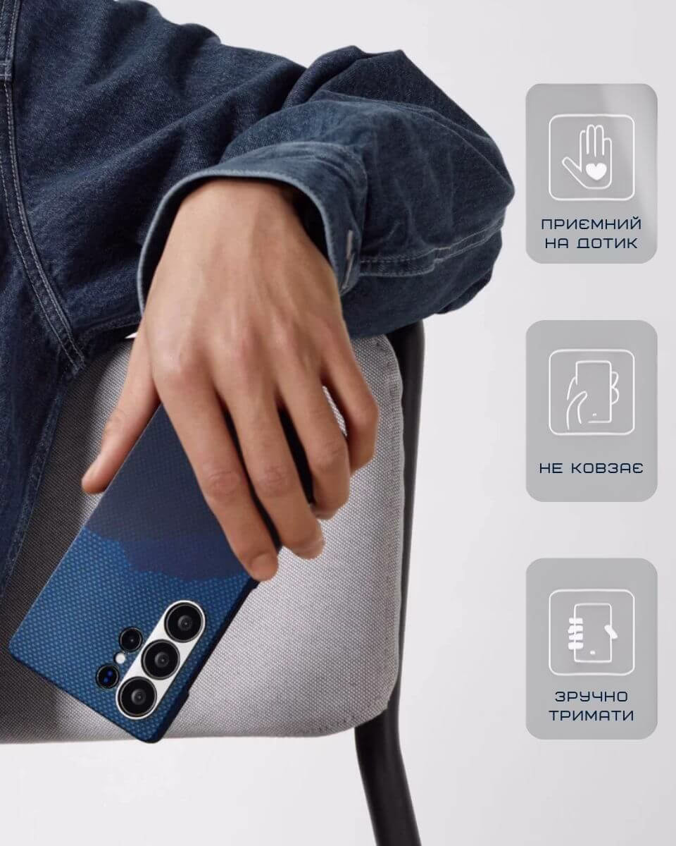 Надміцний чохол з арамідного волокна захищає телефон від несподіваних падінь, подряпин та ударів. Стильний, невагомий та надійний аксесуар преміальної якості, який не захочеться випускати з рук.