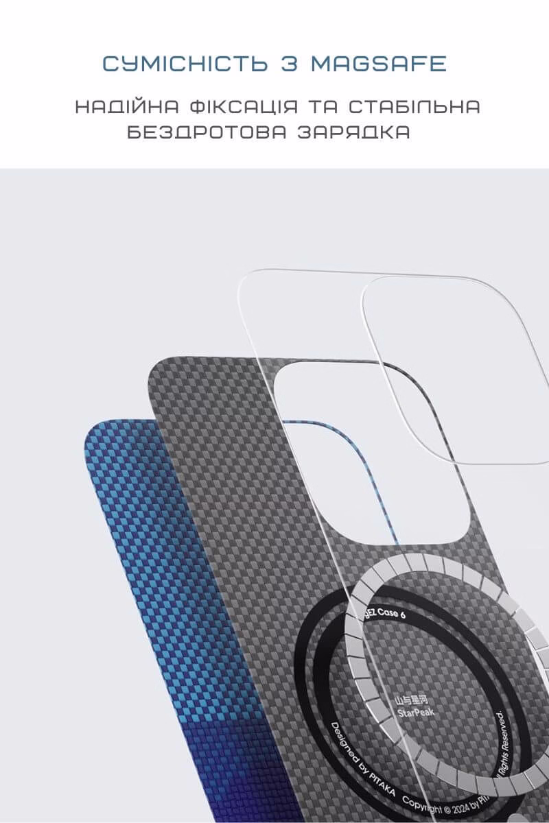 Серія StarPeak Lumintex Over The Horizon від Pitaka символізує шлях до досягнень і підкорення вершин, які наповнюють наше життя. Дизайн чохла натхненний гірськими пейзажами, що нагадують про силу природи та прагнення до висот. Технологія плетіння з арамідного волокна формує візуальний ефект, що переливається, створюючи ефект глибини та руху. Чохол немов оживає, відображаючи безмежність нічного горизонту, прямо в твоїй руці.