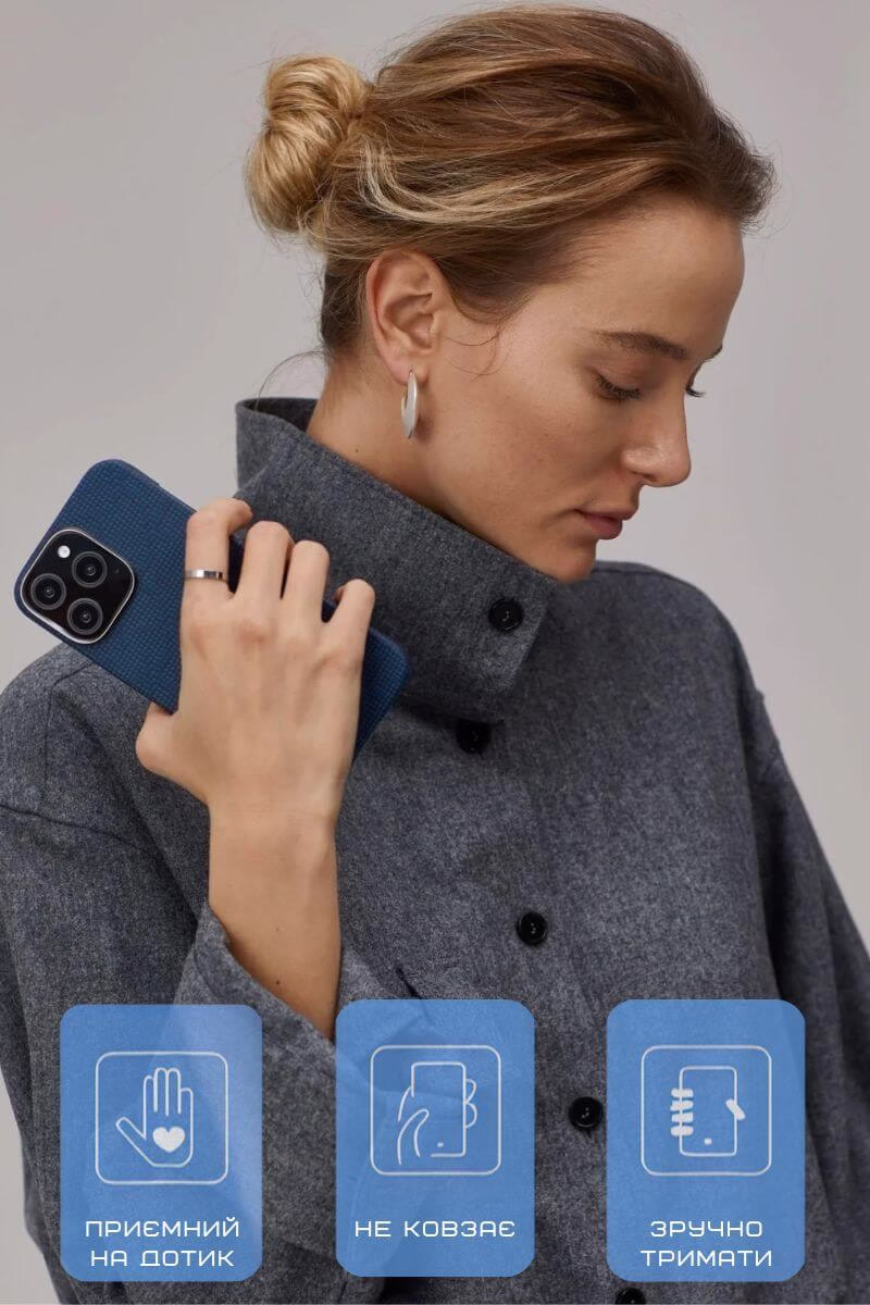 Надміцний чохол з арамідного волокна захищає телефон від несподіваних падінь, подряпин та ударів. Стильний, невагомий та надійний аксесуар преміальної якості, який не захочеться випускати з рук.