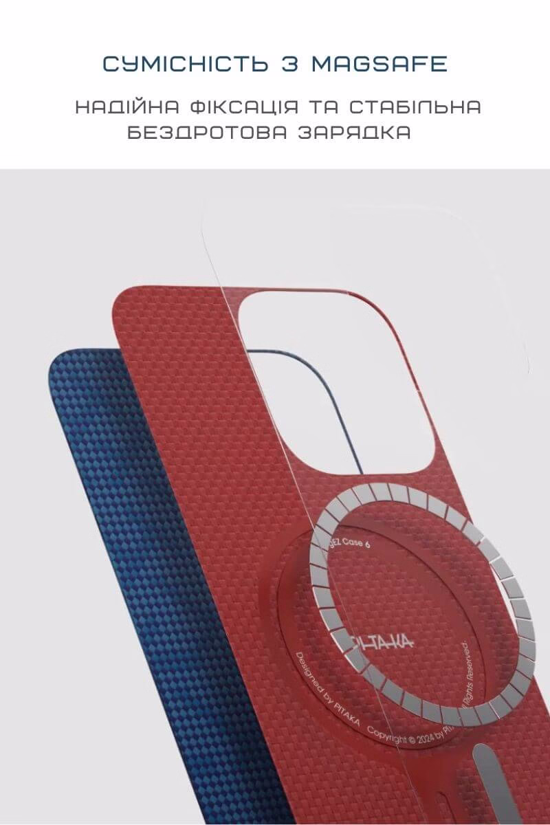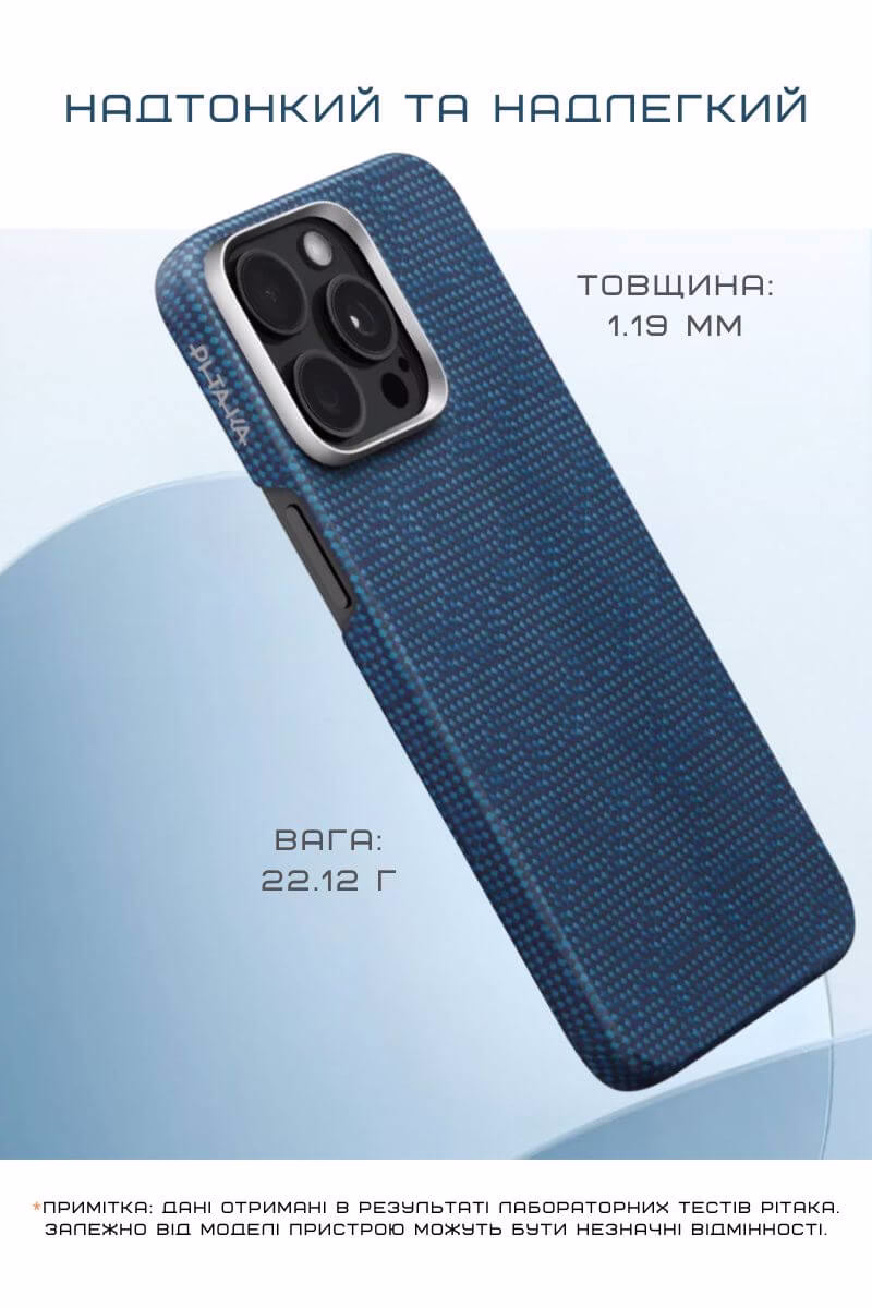 Цього разу бренд Pitaka пропонує інноваційну технологію плетіння, яка поєднує в собі арамідні волокна з монограмою логотипу Pitaka. Це створює оригінальний візуальний ефект, що надає чохлу виразності та характеру.