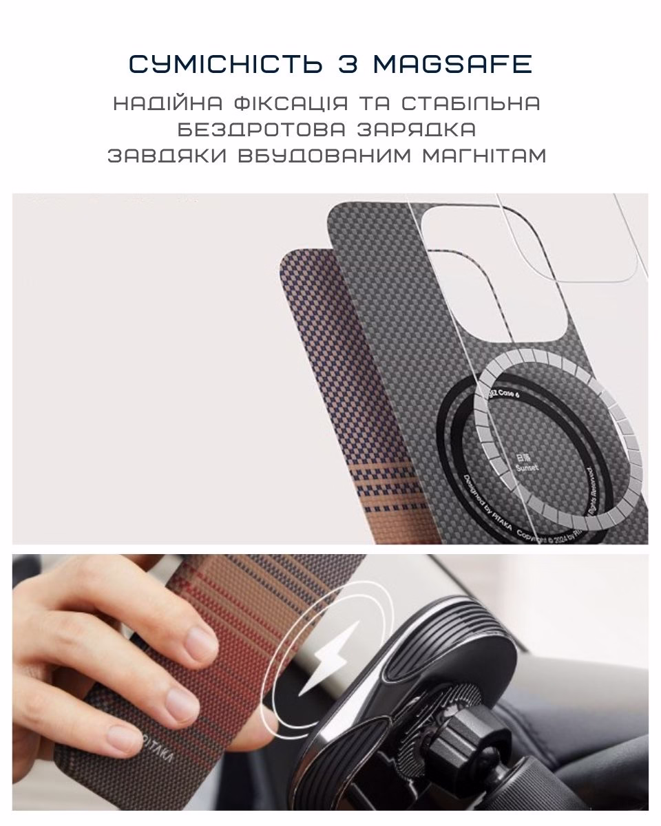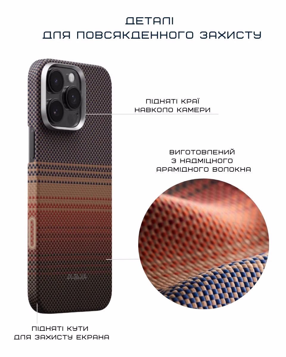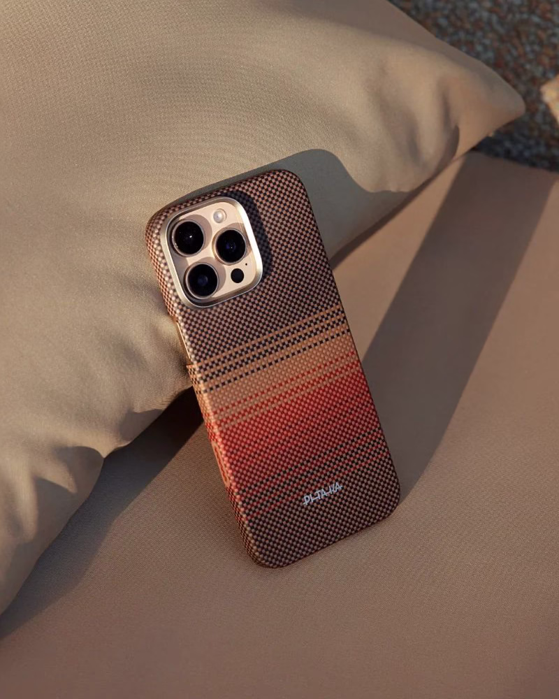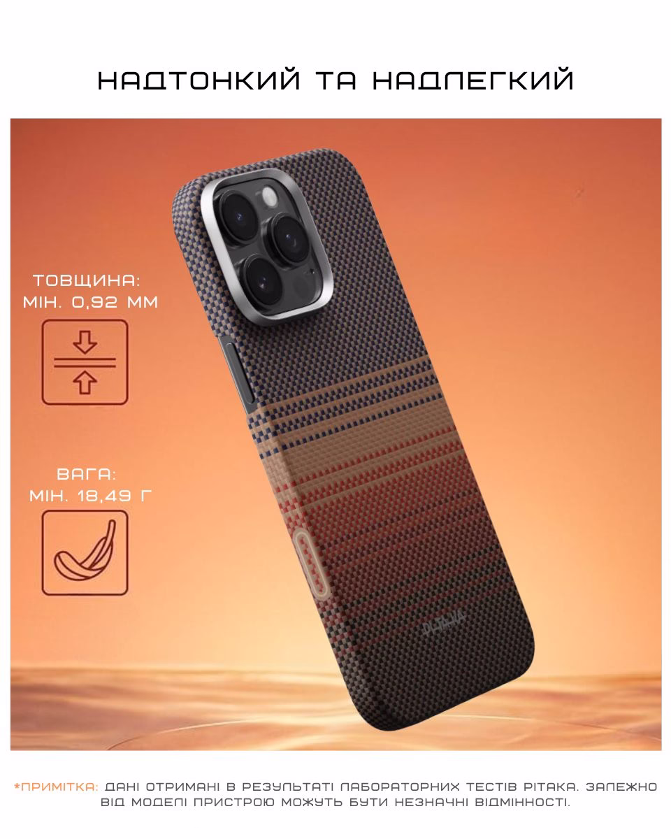 Колекція Sunset переносить у момент, коли сонце згасає за горизонтом і починає проявлятися місяць, захоплюючи своєю красою та переливами відтінків. З чохлом Pitaka твій телефон стане частиною твого стилю, що привертає увагу і викликає емоції.