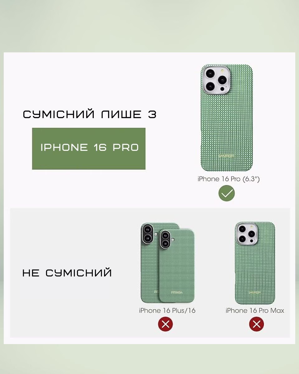 Надміцний чохол з арамідного волокна захищає телефон від несподіваних падінь, подряпин та ударів. Стильний, невагомий та надійний аксесуар преміальної якості, який не захочеться випускати з рук.