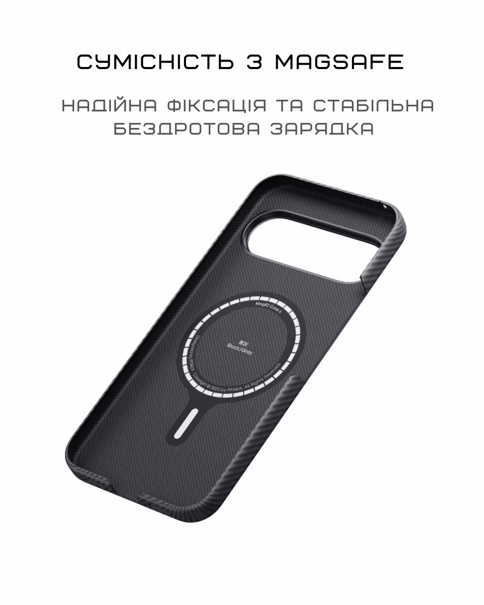 Його особливість — в унікальному поєднанні матеріалів та технологій. Він виготовлений з арамідного волокна 600D, що робить його неймовірно тонким та легким, але при цьому міцним. Завдяки технології MagSafe та іншим інноваціям, цей чохол Pitaka забезпечує неперевершений досвід використання.3. Як він захищає мій смартфон?