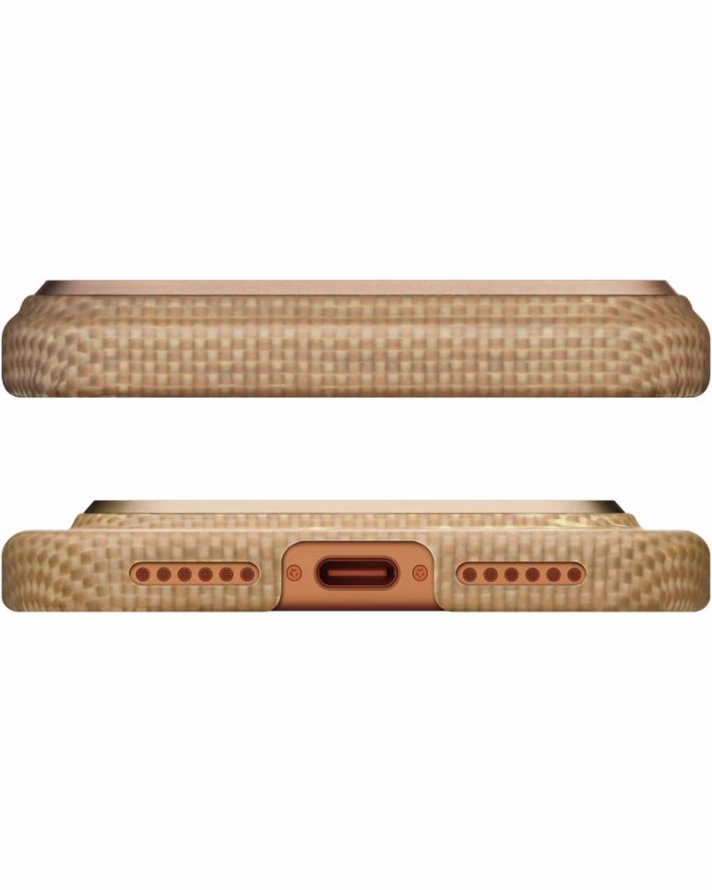 Ультратонкий чохол Pitaka Ultra-Slim Golden Glint майже не змінює розміри iPhone 17 Pro Max, зберігаючи комфортне відчуття в руці. Міцний матеріал надійно захищає корпус від подряпин і щоденних ушкоджень. Точні вирізи забезпечують зручний доступ до всіх кнопок і портів. Елегантний колір Golden Glint надає смартфону виразного преміального стилю.