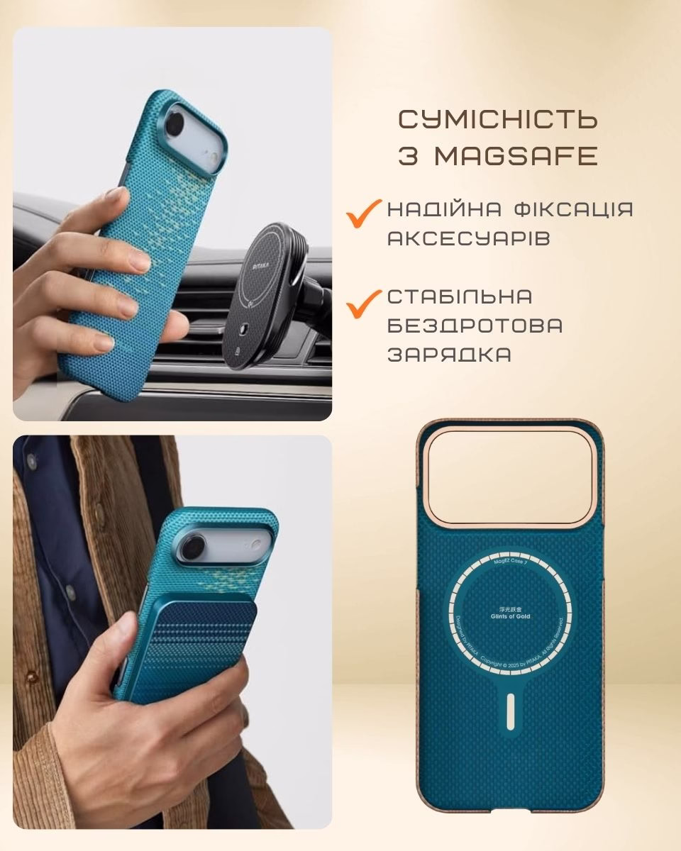 - Сумісність з MagSafe та підтримка бездротової зарядки: стабільна фіксація з усіма магнітними аксесуарами — від зарядних станцій і павербанків до тримачів у авто та гаманців.