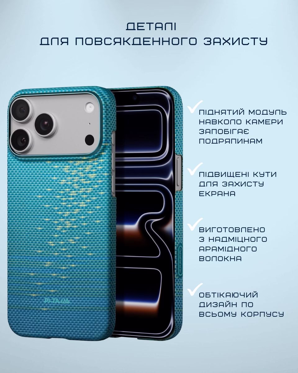 Надміцний чохол з арамідного волокна захищає телефон від несподіваних падінь, подряпин та ударів. Стильний, невагомий та надійний аксесуар преміальної якості, який не захочеться випускати з рук.