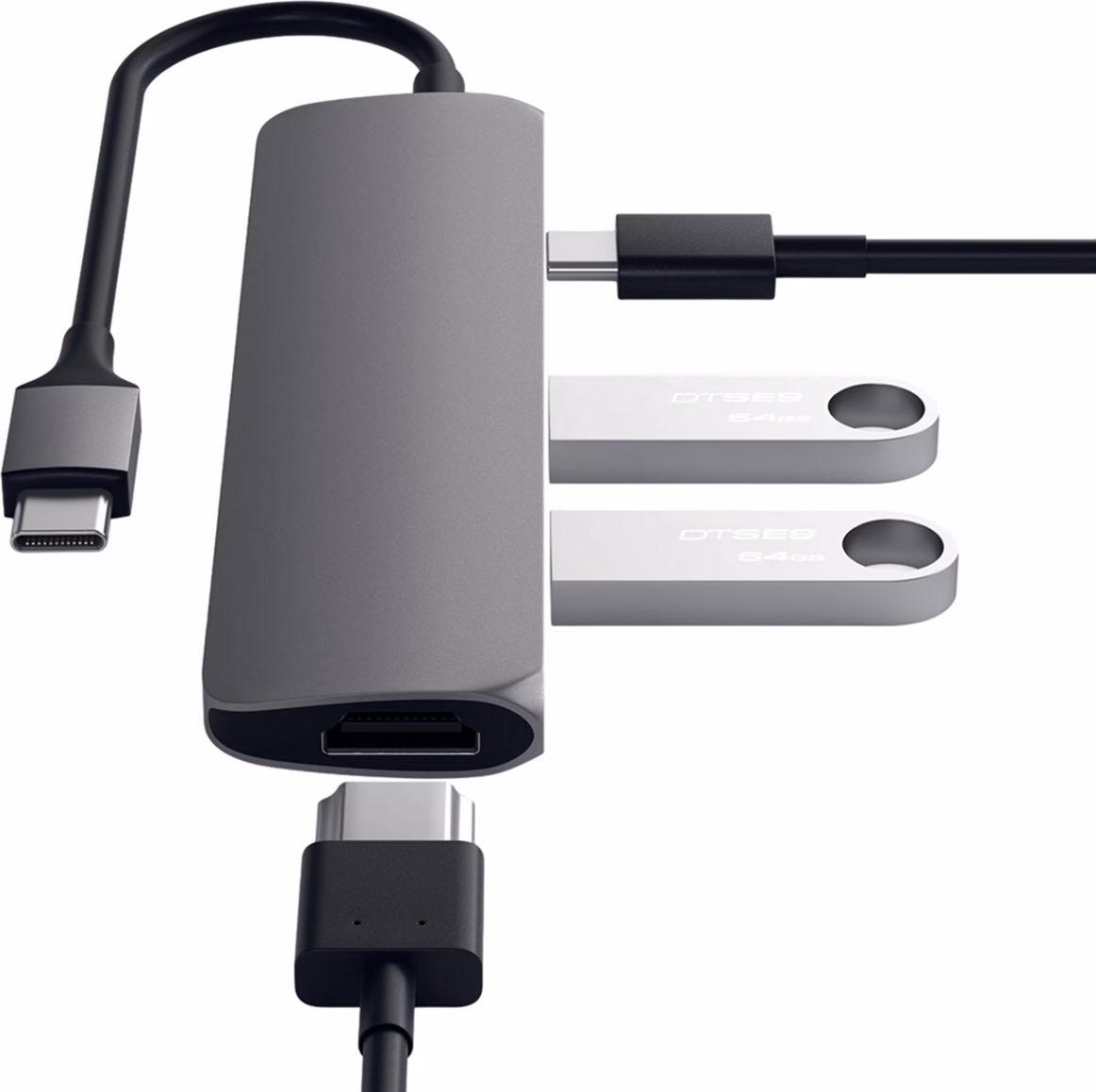 Багатопортовий адаптер Satechi Slim Aluminium Type-C 4K додає безліч підключень до ноутбука або настільного комп'ютера, просто використовуючи один порт Type-C. Додайте до комп'ютера 4K HDMI (до 60 Гц), наскрізну зарядку та два порти USB Type-A.