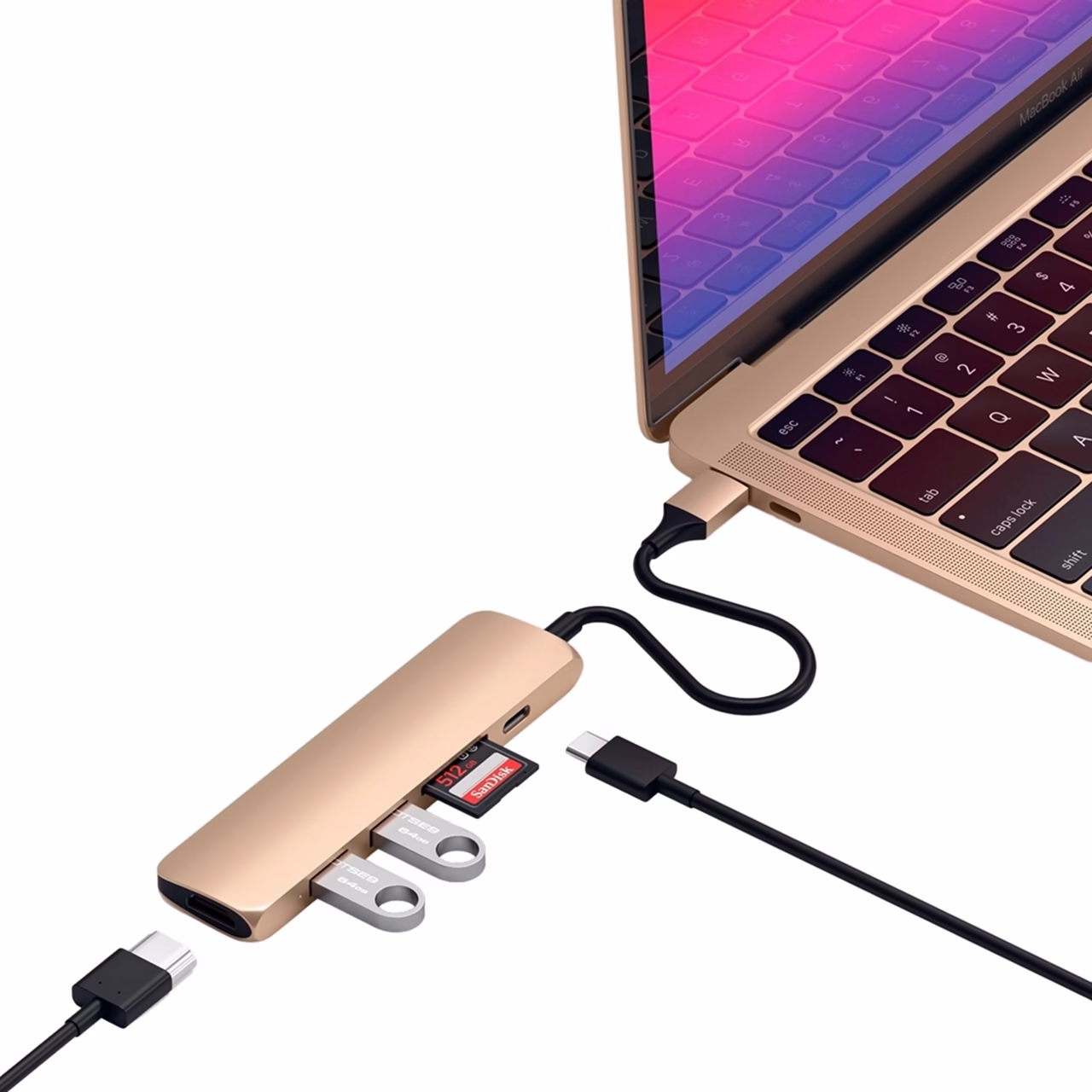 Хаб Satechi Aluminum Type-C Slim Multi-Port Adapter 4K V2 Gold