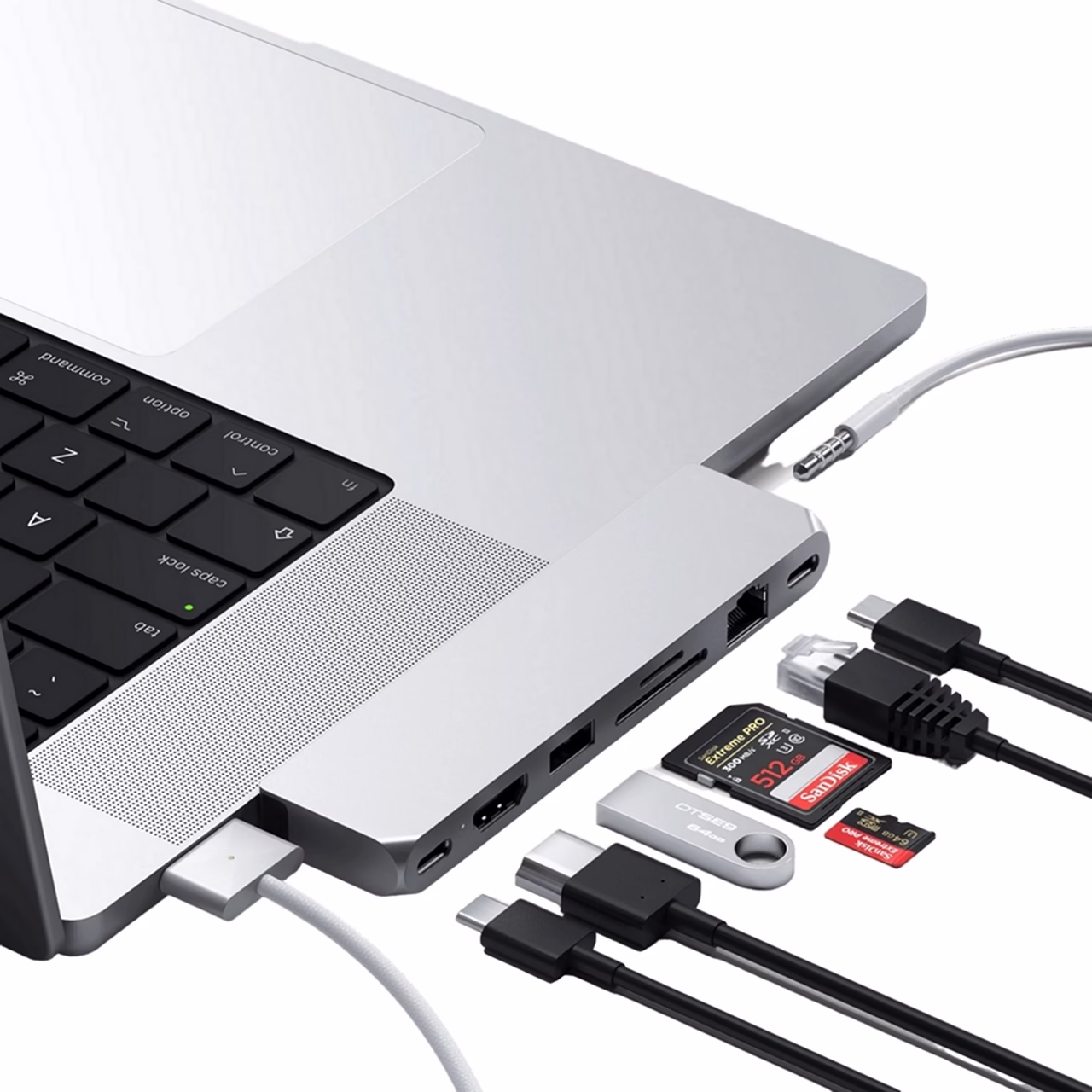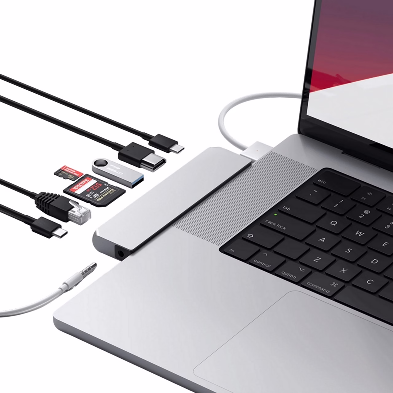 Satechi Pro Hub Max – ваш найкращий компаньйон для MacBook. Завдяки повнофункціональному порту USB-C PD, виходу 4K HDMI, Gigabit Ethernet, USB-C, USB-A, пристроям для читання карт micro/SD і порту аудіороз'єму концентратор надає безліч портів, щоб ви могли працювати в повній силі. Завдяки подвійному роз'єму USB-C та сучасному алюмінієвому оздобленню Pro Hub Max надійно підключається до вашого Mac, забезпечуючи акуратне та стильне налаштування.