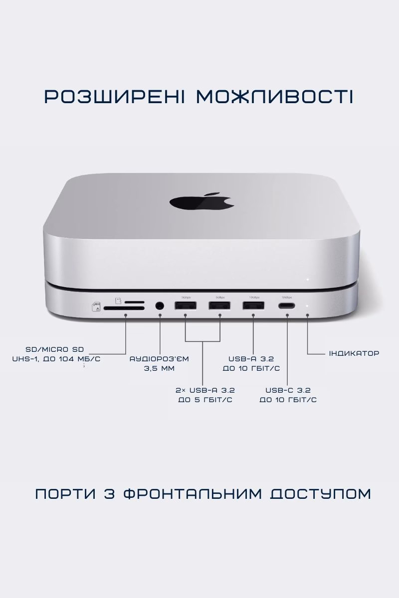 Компактна підставка-концентратор Satechi з додатковими корисними портами та оновленим корпусом для збільшення пам’яті і швидкості роботи. Незамінний девайс для твоєї робочої зони, який додасть функціональності без зайвого хаосу.