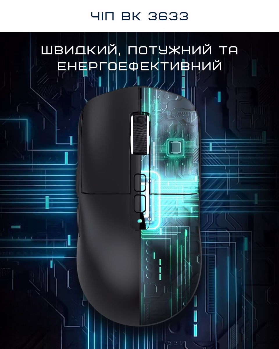 - Модель чіпа BK3633 – сучасний чіпсет із низькою затримкою, що забезпечує швидку передачу даних та миттєве виконання кожного руху