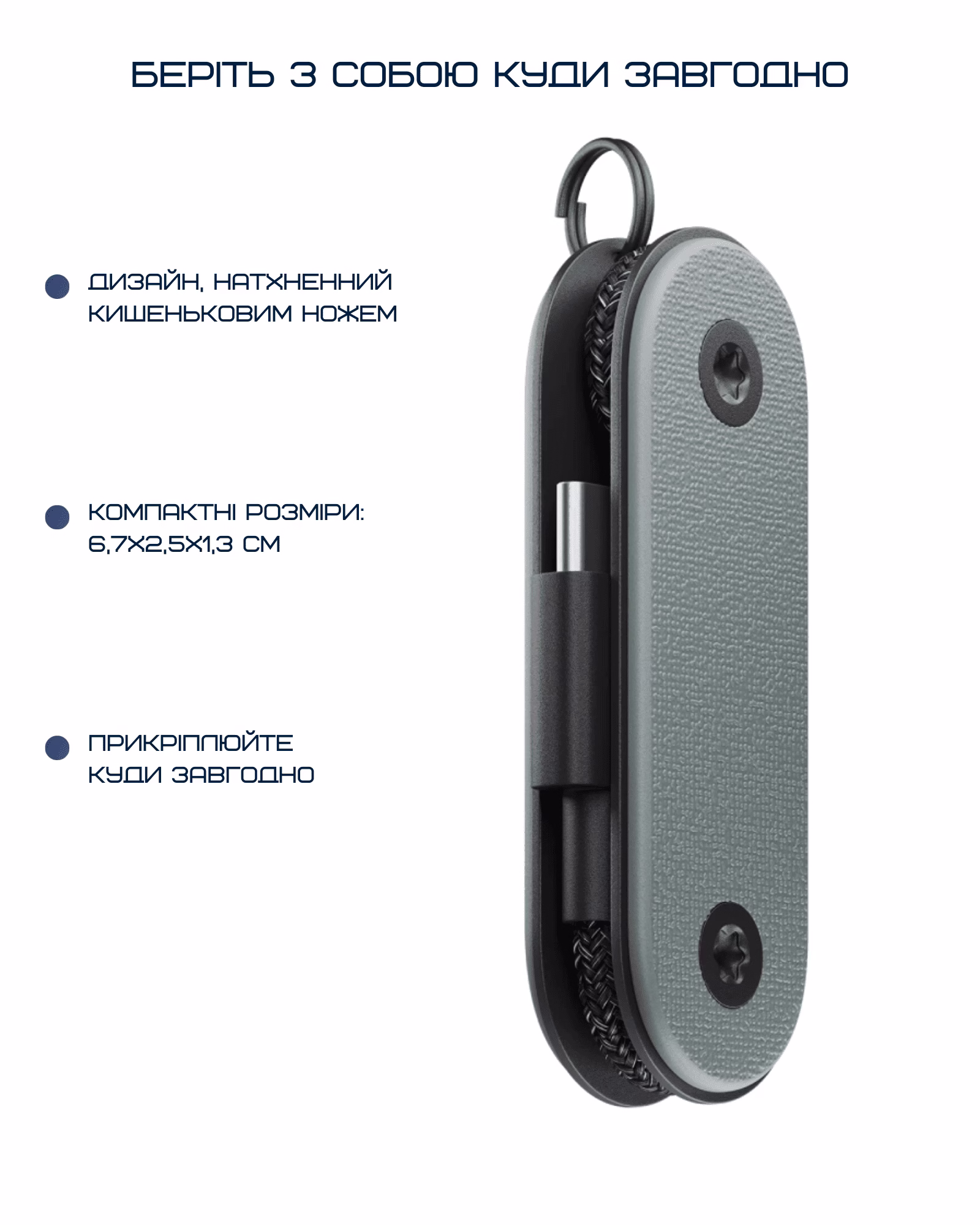 Компактний і стильний кабель! Завжди ношу з собою – не займає багато місця, але рятує, коли потрібно зарядити пристрій.