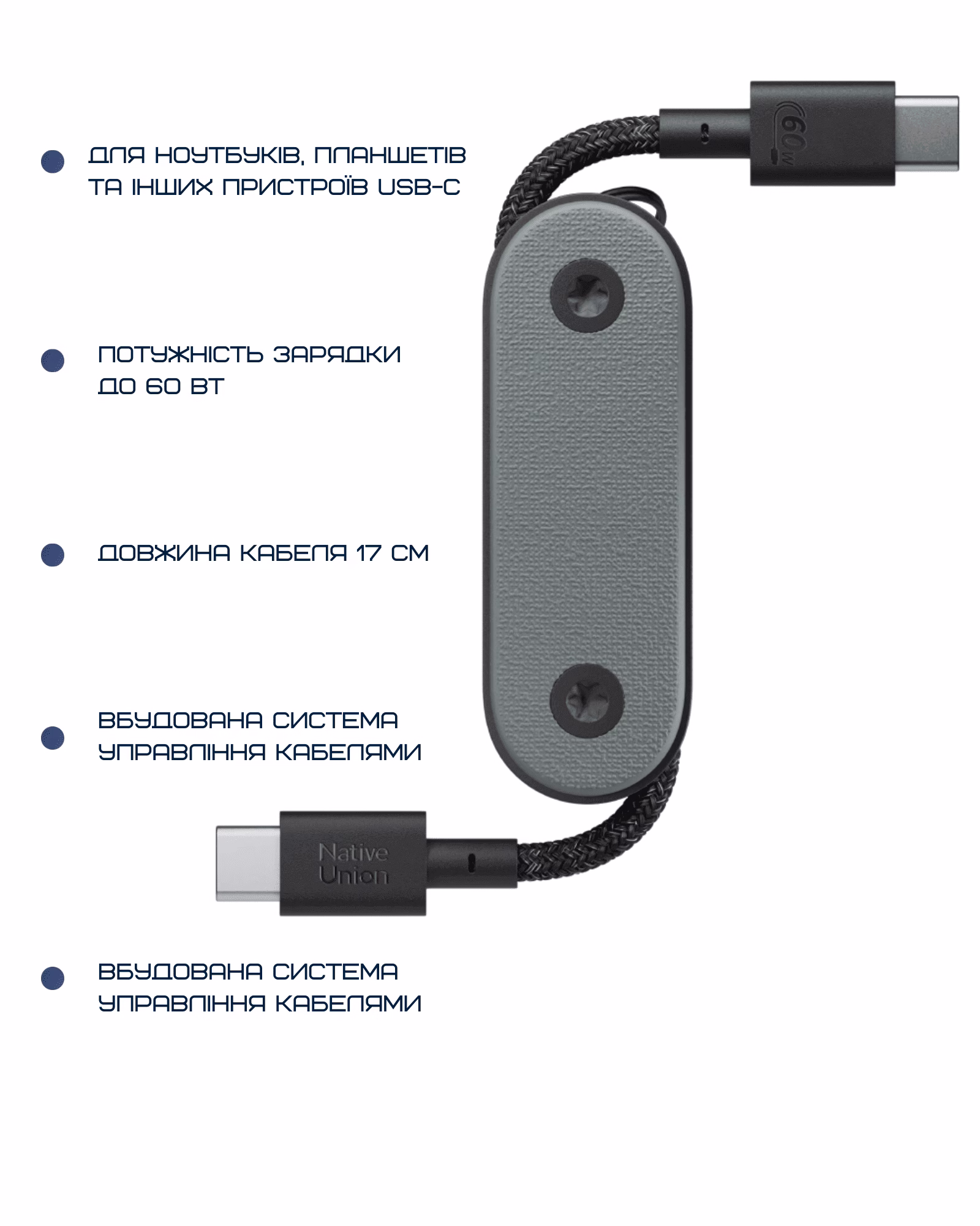 Серія Pocket Cable від Native Union вирізняється своєю унікальною здатністю поєднувати високу продуктивність з максимальним комфортом у використанні. Завдяки компактному формату та стильному дизайну, ця серія створена для активних людей, які цінують комфорт і естетику в кожному елементі свого побуту. Кабелі цієї лінійки забезпечують високу швидкість зарядки та передачі даних, водночас легко вміщуються навіть у кишеню, надаючи вам максимальну мобільність без компромісів у функціональності.