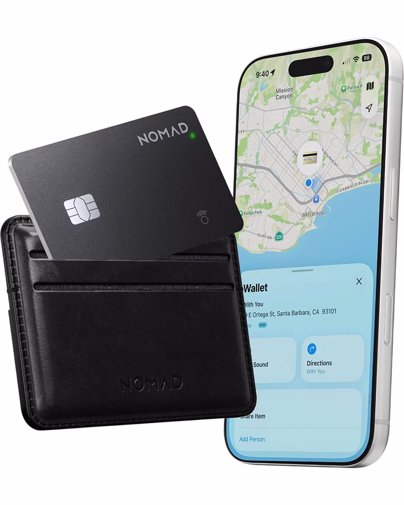 Nomad Tracking Card Pro — це найтонший та найпотужніший спосіб назавжди забути про пошуки загубленого гаманця. Трекер розроблений у форматі преміальної кредитної картки, що дозволяє йому ідеально поміщатися у будь-який слот, не створюючи зайвого об'єму.