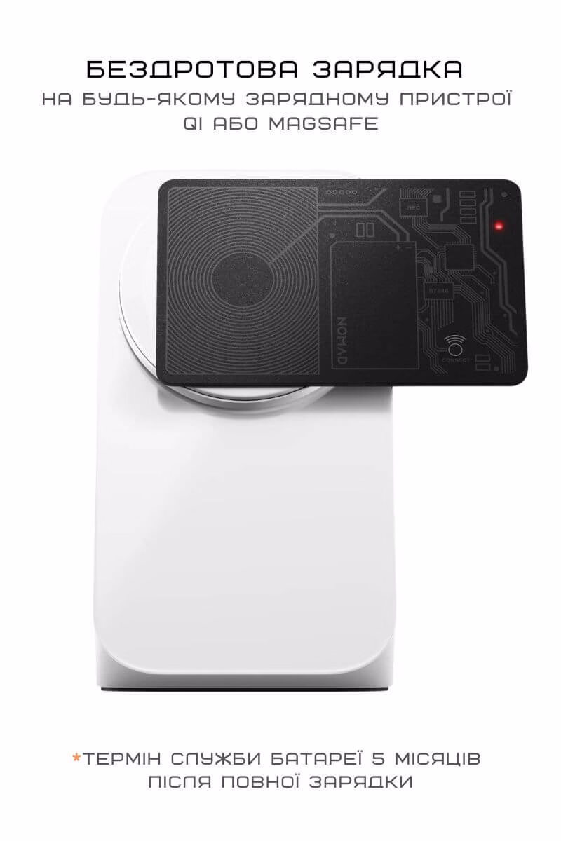 Батареї картки вистачає на 5 місяців, після чого її легко перезарядити за допомогою будь-якого Qi або MagSafe зарядного пристрою.