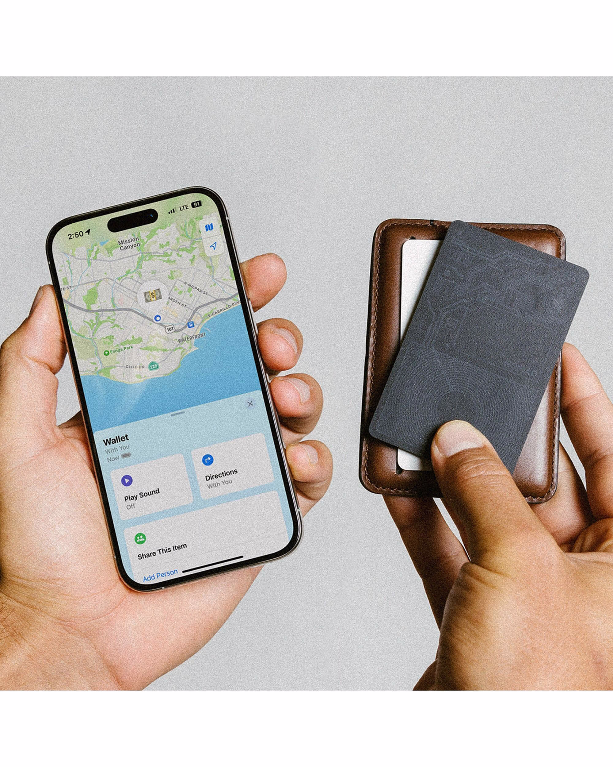 В NOMAD розуміють, що відчуваєш, коли губляться важливі речі. Тому бренд створив Tracking Card, повністю сумісну з додатком Apple Find My, яка допомагає відстежити гаманець чи сумку, в будь-якому місці.